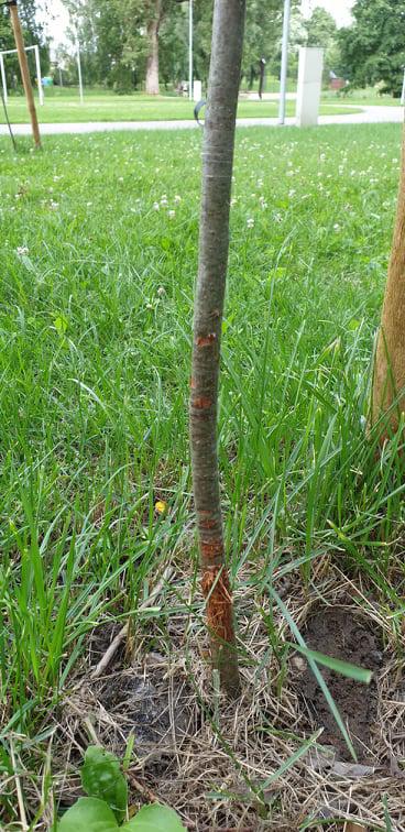 Į akis krenta neprofesionalaus darbo trimeriu pavyzdžiai. Neseniai pasodinti jaunų parko medelių kamienai pažeisti trimerio valo. Didelė tikimybė, jog po tokių pažeidimų sutriks medelių augimas. Kas atsakys už tai, jei ne vienerius metus puoselėti medeliai nudžius?