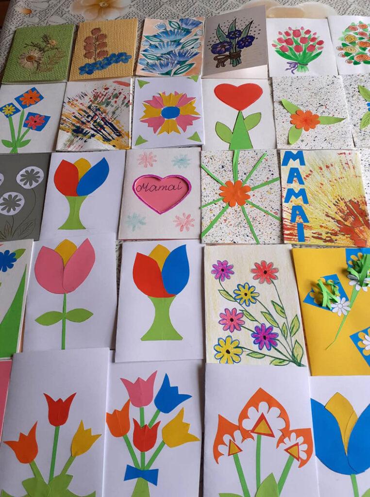 Juk rankų darbo dovanos – pačios tikriausios, nes sukurtos dovanojant savo laiką, meilę ir šilumą. Šiemet atvirukus, skirtus mamoms, gamino daug darbščių rankų su pačiais geriausiais palinkėjimais: Veisiejų seniūnijos bendruomenės vaikų dienos centras (vadovė Erika Kiaulevičienė), Veisiejų kultūros namų neformalaus švietimo būrelis „Nenuoramos“ (vadovė Rita Kulakauskienė), Veisiejų kultūros namų meninės raiškos ir jaunimo klubas „Vizija“ bei Užimtumo ir laisvalaikio studija „Nenuoramos“ (vadovė Erika Petrauskienė), Veisiejų neįgaliųjų rankdarbių studija „Kuparėlis“ (vadovė Dalia Leonavičienė). „Mums daug kas pagelbėjo. Jaunimas šiemet prisidėjo ir jiems labai patiko. Sakė, kad dabar jau kasmet dalyvaus“, – džiaugiasi Veisiejų Šv. Jurgio parapijos „Caritas“ vadovė O. Rėkuvienė. Juolab, kad kiekvienas galėjo savo atviruką pagaminti, kaip tik jo fantazija leidžia. „Ir karpiniais puošti, ir piešti, ir dekupažo technika buvo panaudota. Įvairūs. Kokius tik sumanė, tokius ir kūrė. O ir žodžiai, specialiai mamoms skirti, nugulė atvirukuose“, – pasakoja pašnekovė.