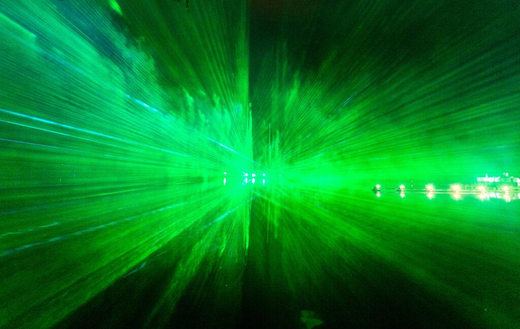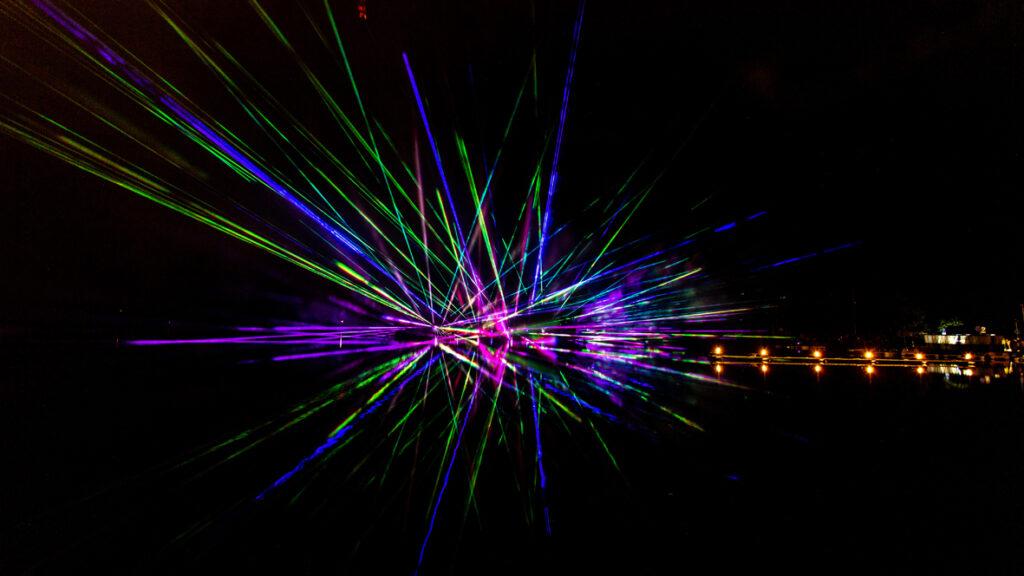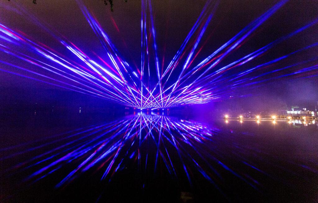 Efektingas lazerių šou virš ežero