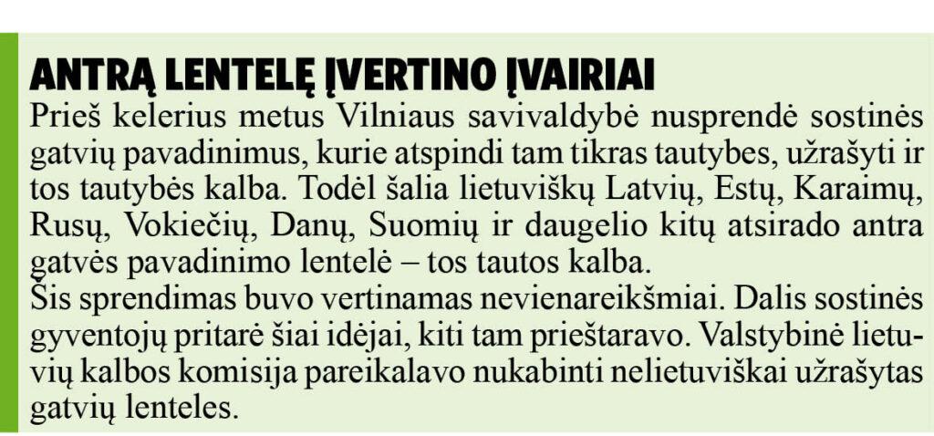 Jau daugiau nei tris dešimtmečius gyvename nepriklausomybę atkūrusioje Lietuvoje, džiaugiamės galėdami laisvai kalbėti savo kalba, lietuviškai rašyti ir su slogučiu prisimename tuos laikus, kai daugelyje mūsų gyvenimo sričių buvome priversti vartoti okupantų primestą jų kalbą. Jauni žmonės net neatsimena, jog visų užrašų viešojoje erdvėje šalia lietuviškos buvo ir rusiška versija.