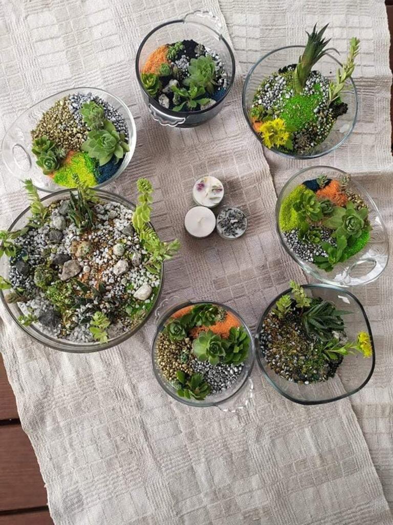 „Kažkas pirko puokštę gėlių parduotuvėje – pamatė susluoksniuotą smėliuką stikliniame inde, o jame susodinti augaliukai. Tuoj „nukentėjo“ kaimo žmonių palangių gėlės: juk reikėjo augalų atžalėlių. Vaikai susikūrė savo kompozicijas. Ne tik pasidarė, bet dar ir prižiūri. Susitarėme, kad jei jau numirs augaliukai, stiklinius indus parneš į dienos centrą: panaudosime kažkam kitam. Kol kas nė vienas dar nesugrįžo“, – pasidžiaugia pašnekovė.
