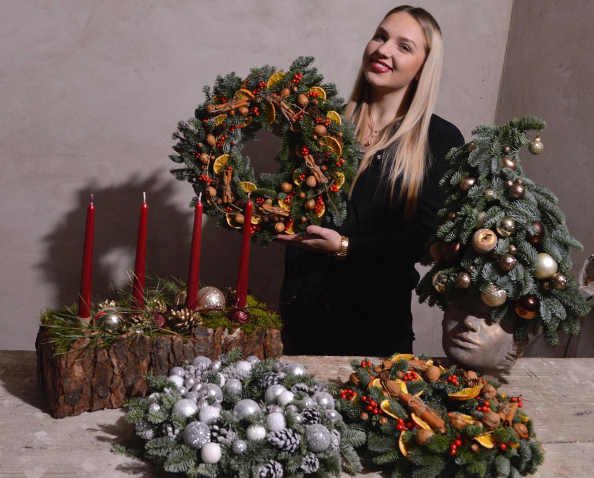 Tačiau ne tik vainikus Kalėdoms kuria, bet ir stilingas žiemos puokštes, kurios puikiausiai gali pasitarnauti žiemą gimusiems pasveikinti. Neseniai pagamino puokštę, kurią pavadino „Kalėdų Senelio žmona“. Pavadinimas toks pat įmantrus kaip ir pati puokštė. „Norisi kažką naujo sukurti, parodyti žmonėms. Gal vainikais jau visi pasipuošė, tad reikia kažko kito, kažko naujo“, – tarsteli ji.
