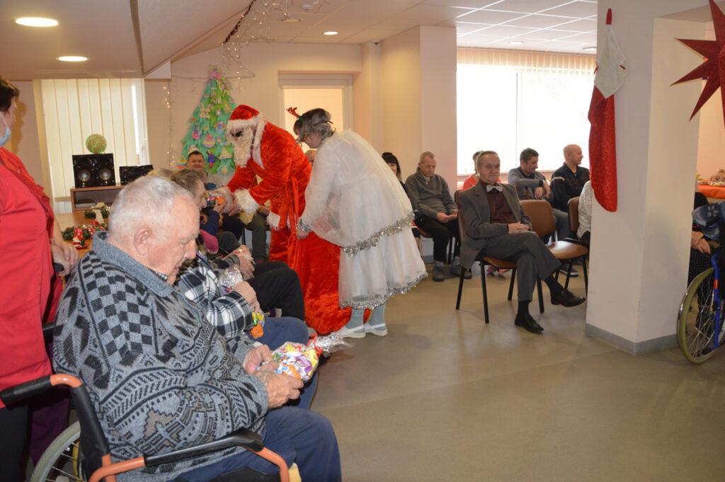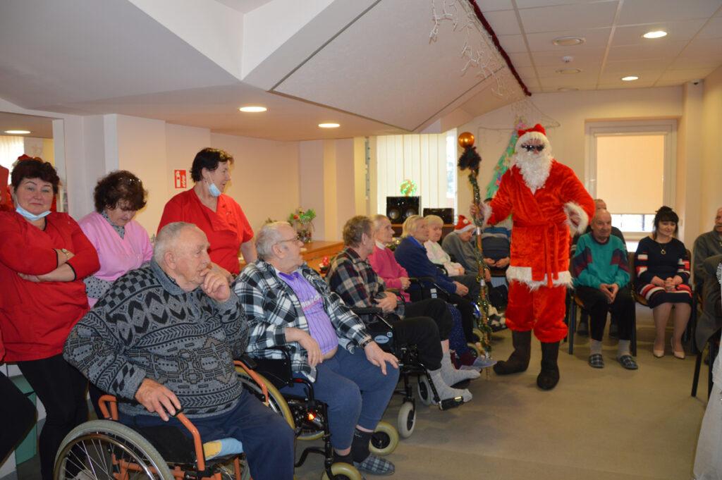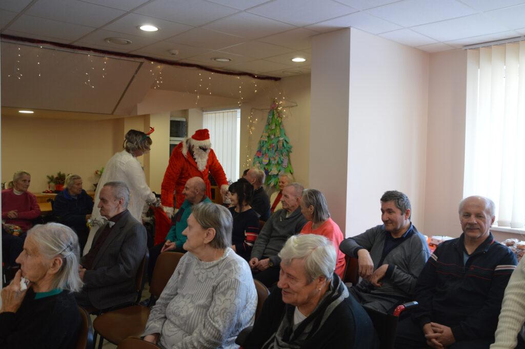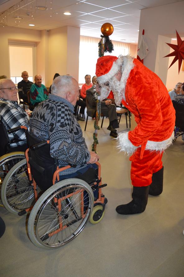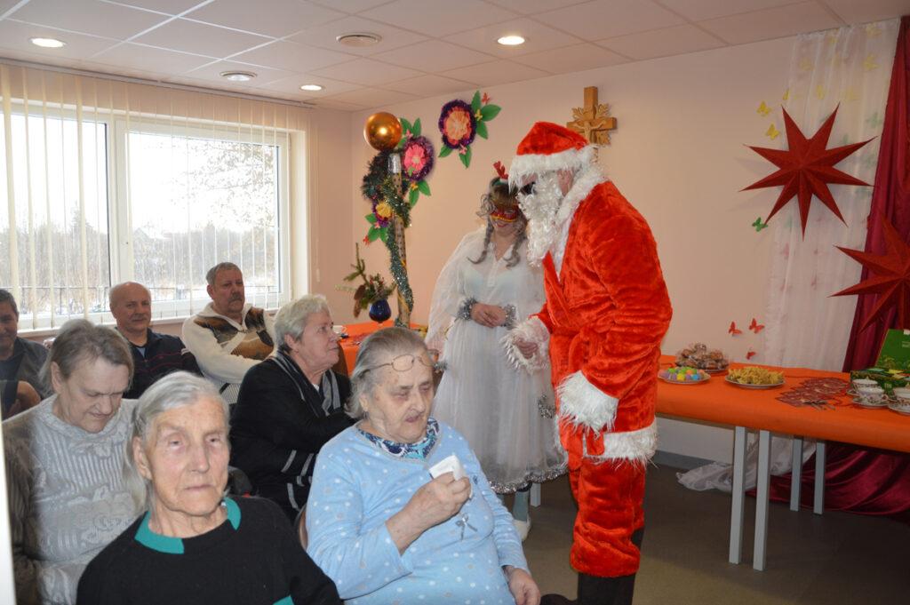 Šių namų gyventojai visada šiltai ir džiaugsmingai pasitinka juos aplankančius. Kalėdų Senelis stengėsi kiekvieną išklausyti, liepė stebuklingą lazdą palaikyti, kad išsakytas noras ar palinkėjimas tikrai išsipildytų, pašokdinti tie, kurie gali. Išsakyta daug gražių žodžių, palinkėjimų, eilėraščių. Smagiausia buvo matyti šypsenas ir džiaugsmą veiduose, norą pabendrauti. Juk Kalėdų Senelis ne tik su pilnu maišu saldėsiais kvepiančių ryšulėlių atvyko, bet ir pats gitarą į rankas paėmęs visus linksmino. Prisišokta, padainuota ir mįslės įmintos. O kas negalėjo ateiti kartu pasibūti, Kalėdų Senelis aplankė kambariuose, čia jis sutiktas ir su ašaromis, ir su šypsenomis. Vieni seneliai graudinosi, kiti džiaugėsi, delnuose laikė dovanas tarsi stebuklą, kad nepamiršti, kad svarbūs, reikalingi, kad ne vieni. „Aš jau seniai nežiūriu nei į pasą, nei veidrodį“, – juokavo Kalėdų Senelis girdamas senoles. Ir pats kaip tikras džentelmenas barzdą sau pasišukavo, pasitvarkė. Sakė nenorįs prastai atrodyti.