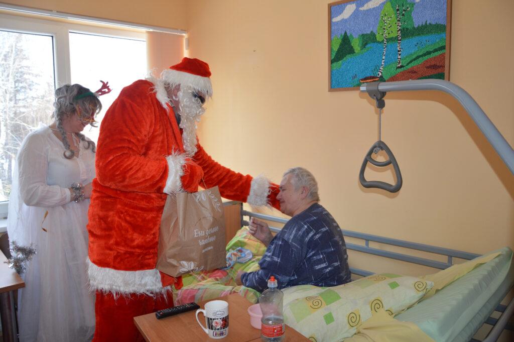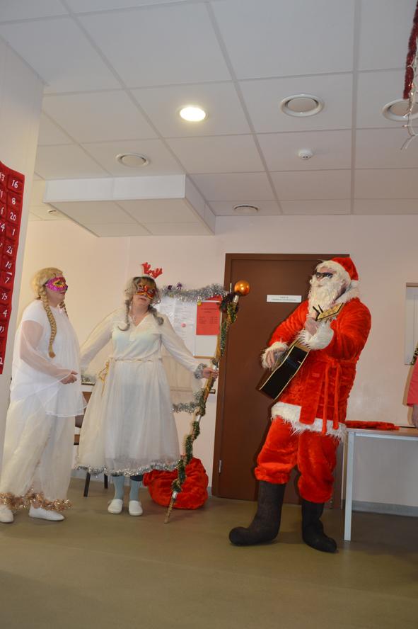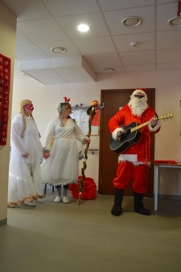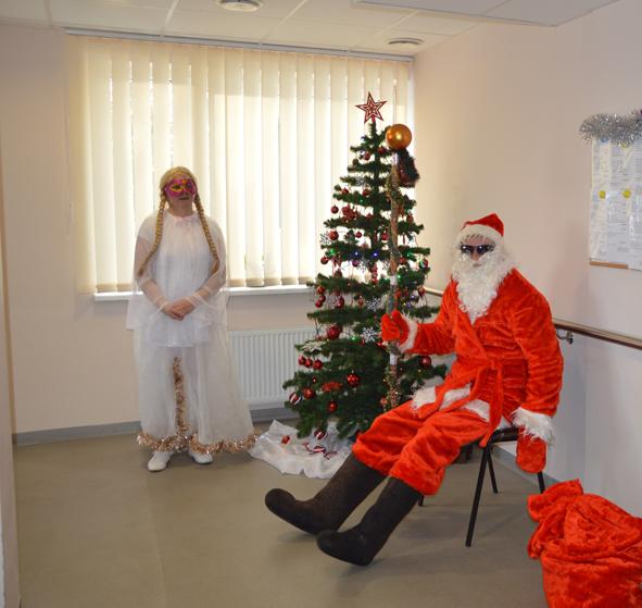 Dar vienas šventinis stebuklas Lazdijų socialinės globos namuose – Kalėdų Senelio viešnagė. Ir ne tik Senelio, bet ir dviejų žavių Snieguolių. O ir pats Kalėdų senelis, užsukęs į šiuos namus, šiemet ypatingas: su gitara ir humoru, gydančiu visas ligas. Tai viena nuostabiausių tradicijų globos namuose – aplankyti kiekvieną gyventoją jo kambaryje, pasveikinti švenčių proga, įteikti po dovanėlę, galinčius pakviesti net pasišokti.