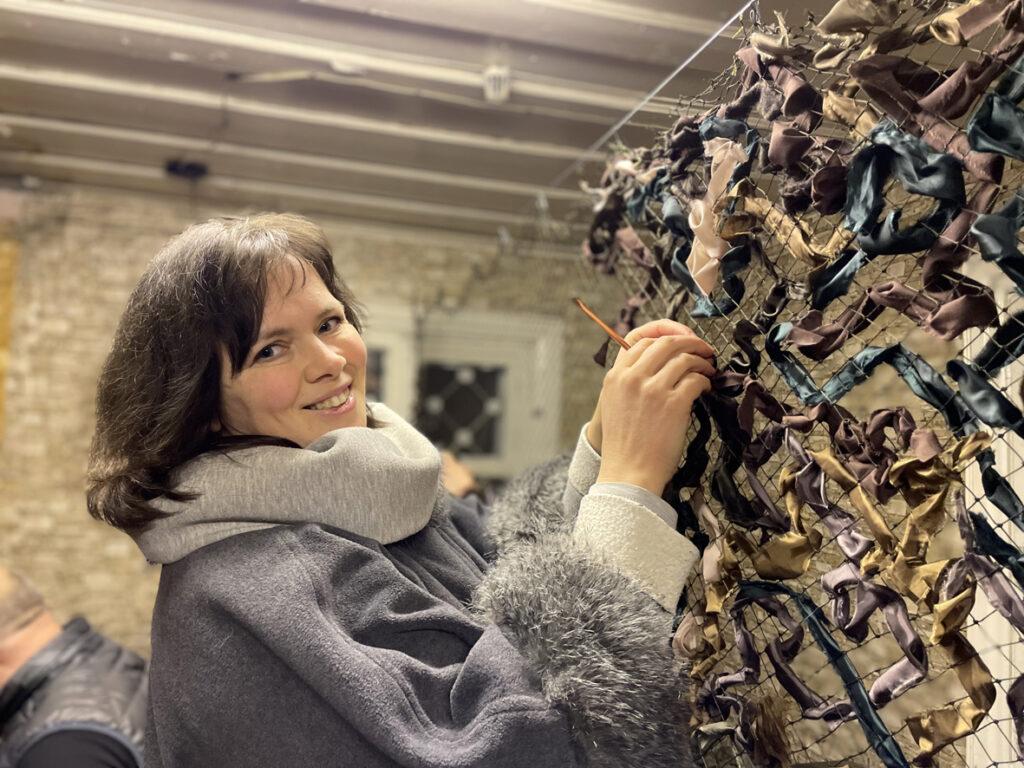 Paklausta, kaip sugalvojo imtis tokios iniciatyvos, Agnė sakė: „Prasidėjus karui dingo įkvėpimas kurti, toks jausmas, kad mūzos kažkur išskrido, labai rūpėjo kažkaip prisidėti ir padėti Ukrainai, sužinojusi, jog ieškoma žmonių, galinčių savo rajonuose gaminti kamufliažinius tinklus, nedvejojau ir ėmiausi šios iniciatyvos. Gavome visas medžiagas tinklų gamybai ir pirmadienį kibome į darbus. Įsitraukė visa Šventežerio bendruomenė, prisijungia ir kitos. Per dvi dienas jau pagaminome du tinklus. Galvojau, kad darbas bus labai lengvas ir paprastas, tačiau turėjau išklausyti mokymus nuotoliniu būdu, yra tam tikra strategija ir taisyklės, jų reikia laikytis, kad tinklas būtų tinkamas naudoti.“