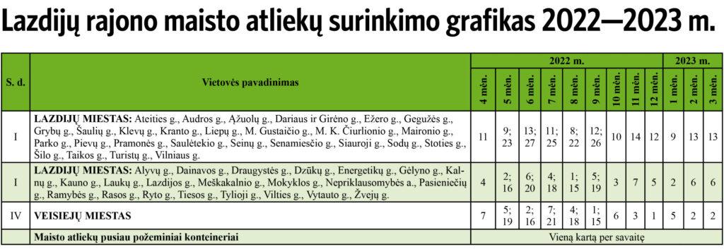 Lazdijų rajono maisto atliekų surinkimo grafikas 2022–2023 m.