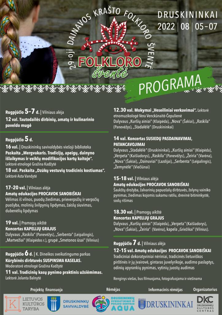 Jau tris kartus piršlys su rūtomis puošta lazdyno lazda beldėsi į būsimos jaunamartės namus: mergelė „užgerta“, piršlys sočiai pavaišintas, pasoga suderėta, o jaunikio butelys ant stalo mergelės atkimštas ir rūtų vainikėliu padabintas. Taigi, tris dienas ir tris naktis Druskininkuose aidės lamzdžiai, dundės būgnai, grieš kapelijos, skambės dainos ir trinksės šokiai. Rugpjūčio 5–7 d. mieste vyks 29-oji Dainavos krašto folkloro šventė, į kurią suvažiuos beveik 170 autentiško folkloro puoselėtojų iš įvairių Lietuvos regionų ir pristatys specialiai parengtas koncertines programas apie Dzūkijos ir kitų regionų senųjų vestuvių tradicijas: papročius, apeigas, dainas, verkavimus, tautinius kostiumus.
