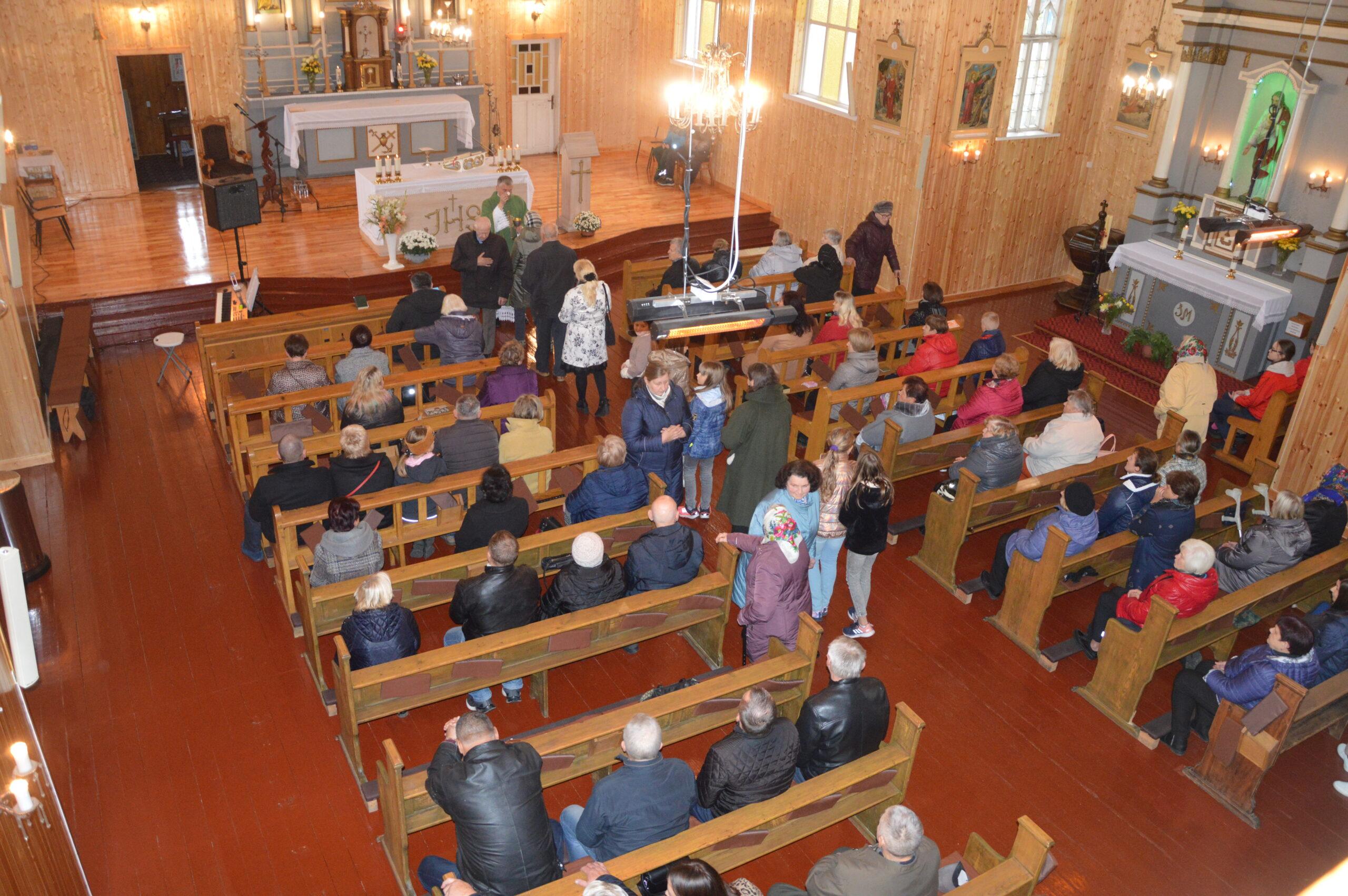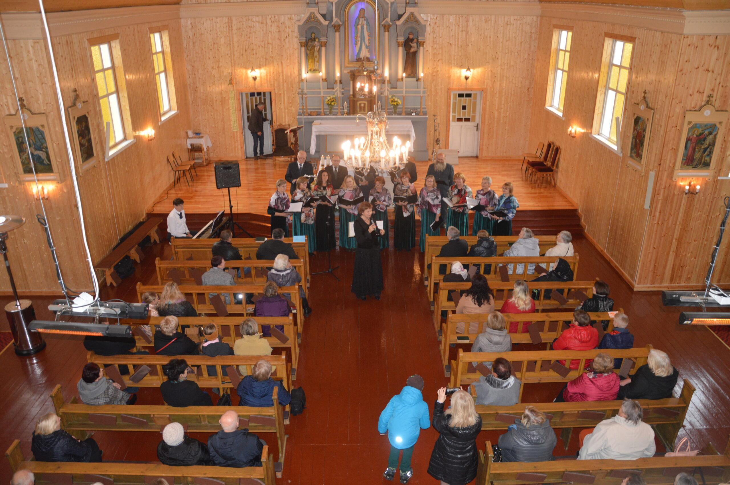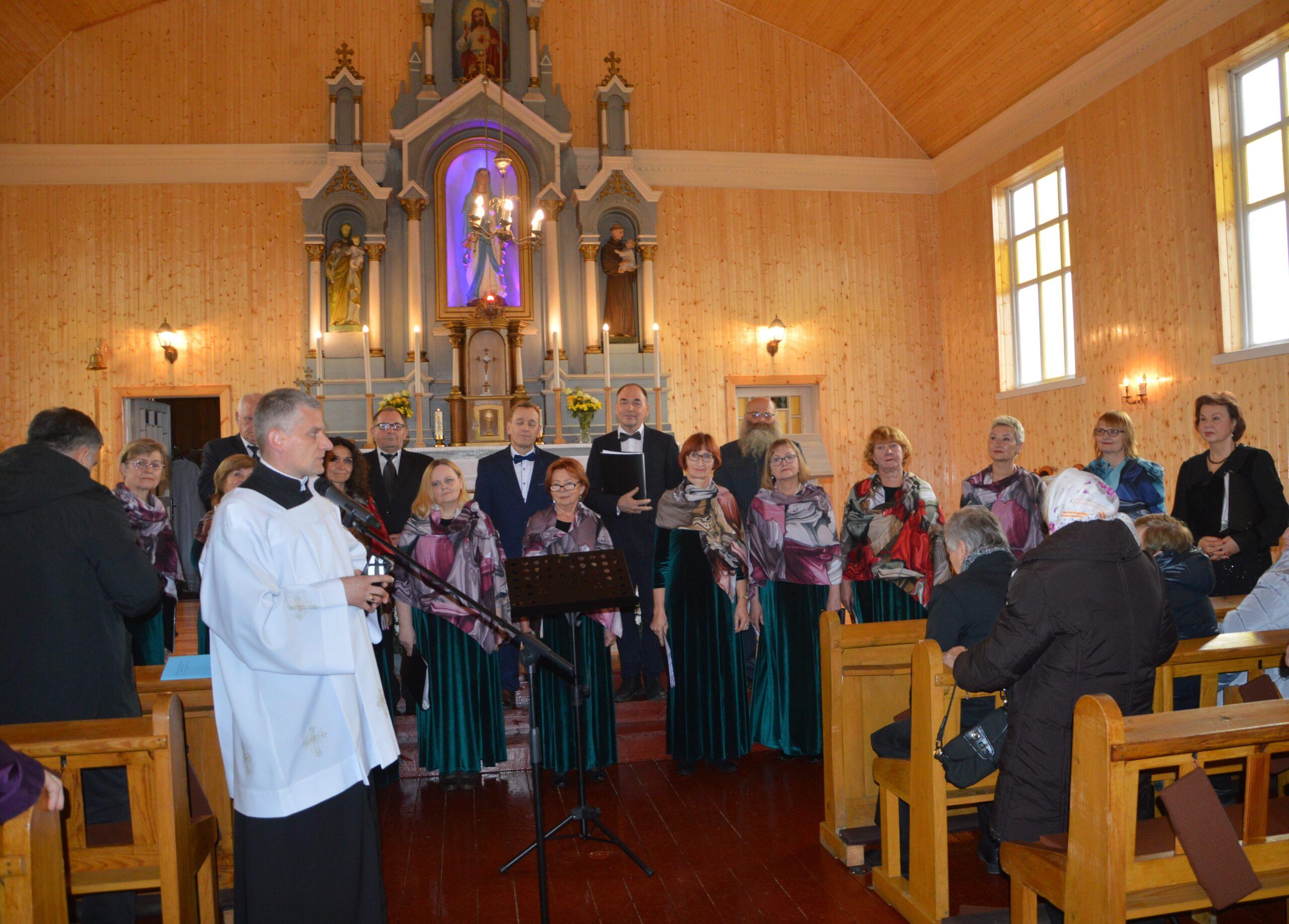 Ir tądien jaukią sekmadienio atmosferą kūrė ir giesmes Viešpačiui skyrė Laimutės Vitukynienės vadovaujamas Kazlų Rūdos kultūros centro mišrus choras „Viltis“. Ir ne tik šv. Mišių metu giedojo, bet ir po jų šventinį koncertą dovanojo. Po bažnyčios skliautais skambėjo jaudinantys kūriniai. Muzikos ir žodžio dermė pakylėjo susirinkusius į aukštesnę, meno ir grožio, dimensiją.