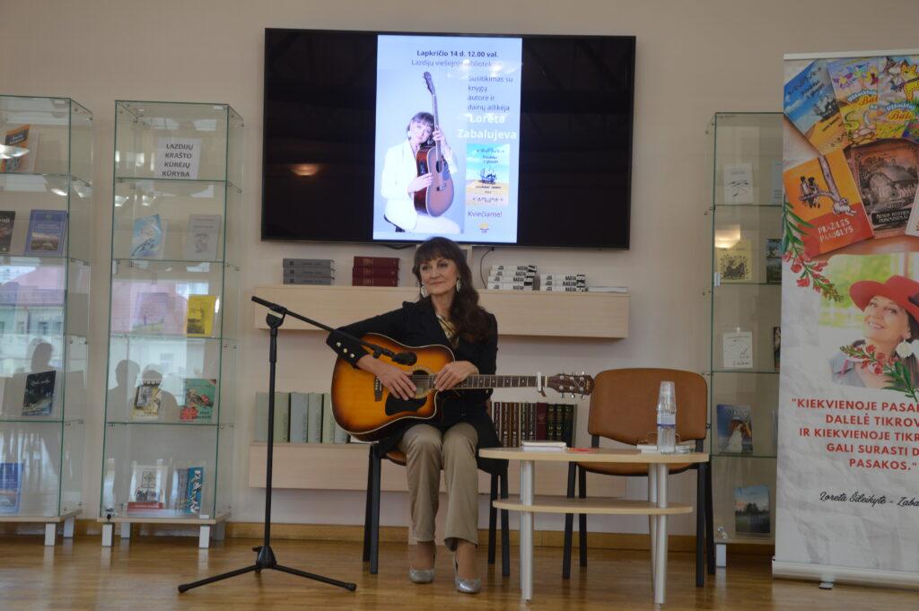 Lazdijų viešojoje bibliotekoje atlikėja, rašytoja Loreta Zabalujeva klausytojus užbūrė savo poezija, skambant gitaros stygoms. Susirinkusieji smagiai ir turiningai praleido laiką. Tiesa, tądien su kūrėja susitiko ne tik suaugusieji, bet ir mažieji bibliotekos skaitytojai. „Taigi, rudens kūrybinis turas tęsiasi“, – sako pati Loreta. Prisipažįsta, sugrįžti į Lazdijus jai visad smagu.
