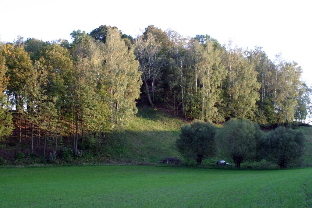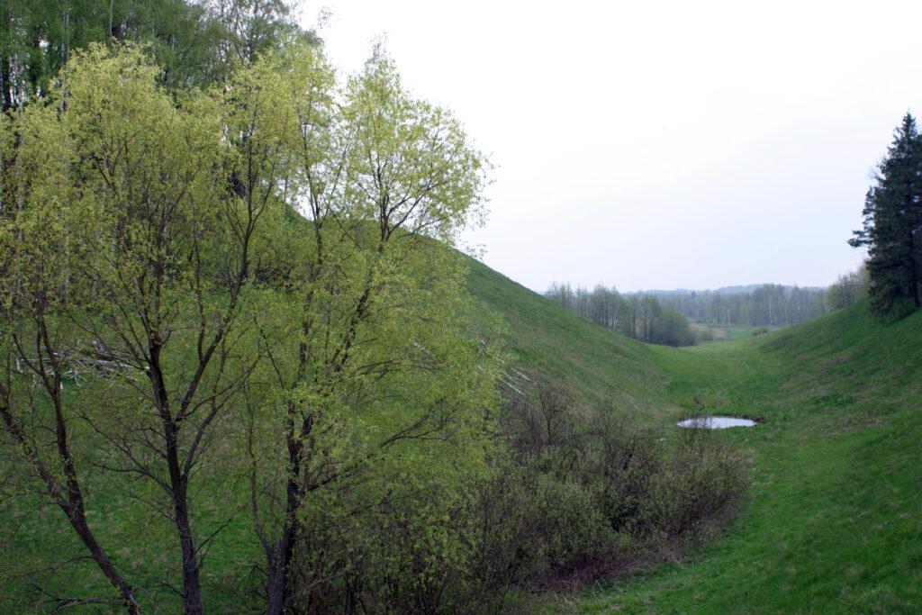 Ties siauru kaimo keleliu palikęs automobilį, gali per pievą pasiekti piliakalnio skardį, bet turėsi įveikti ne vieną šių dienų kliūtį – elektrinio piemenuko užtvaras. Staiga kadras pasikeičia. Jis tirštėja ir darosi vis įdomesnis. Ant skardžio augančių aukštų pušų šešėliai sugula ant piliakalnio šlaito. Piliakalnio skardis, prie kurio tu dabar stovi – labai status. Į jį neužkopsi, net nebandyk. Vakarinėje piliakalnio papėdės pusėje, giliame griovyje, tyvuliuoja nedideli vandens telkiniai. Senovėje vandens buvo daug daugiau. Mūsų dienomis griovys abiejuose galuose išsiplėtoja į slėnius.
