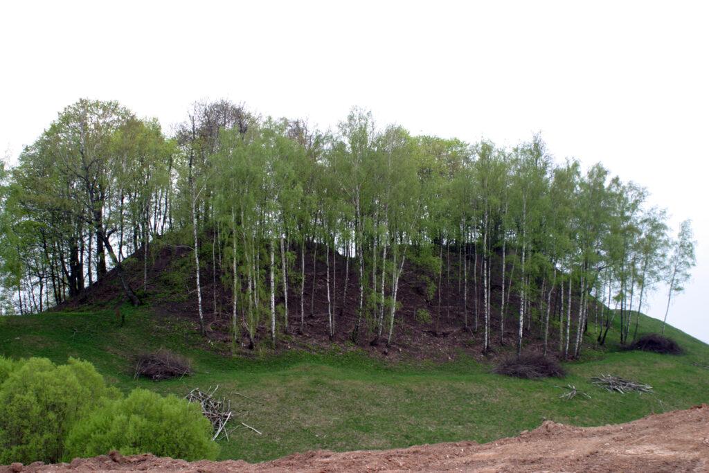 Šioje tvirtovės dalyje lenkų archeologai aptiko gynybinio pylimo liekanų – keliolikos sluoksnių skeltų lentų likučių. To pylimo pagrindas buvęs maždaug 4 metrų gylyje po mūsų laikų grunto lygiu. Manoma, kad pylimas supiltas pirmuoju kalvos apgyvendinimo laikotarpiu, kuris datuojamas IV–V a. Vėlesniais amžiais vyko kiti darbai, jų tikslas buvo padidinti aikštelės paviršių. Apie tai liudija tyrinėjimų metu atkasti smėlio ir molio sluoksniai. Senienų stoka toje vietoje neleido mokslininkams apibrėžti šių pokyčių laikotarpio. Priimta prielaida, kad tai vyko tarp X ir XII a. Kaip rodo radiniai – metaliniai daiktai, XIII a. ši pilis tapo galinga tvirtove. Apie tai liudija iki šiandien puikiai išsilaikę didžiuliai akmenimis sustiprinti pylimai.