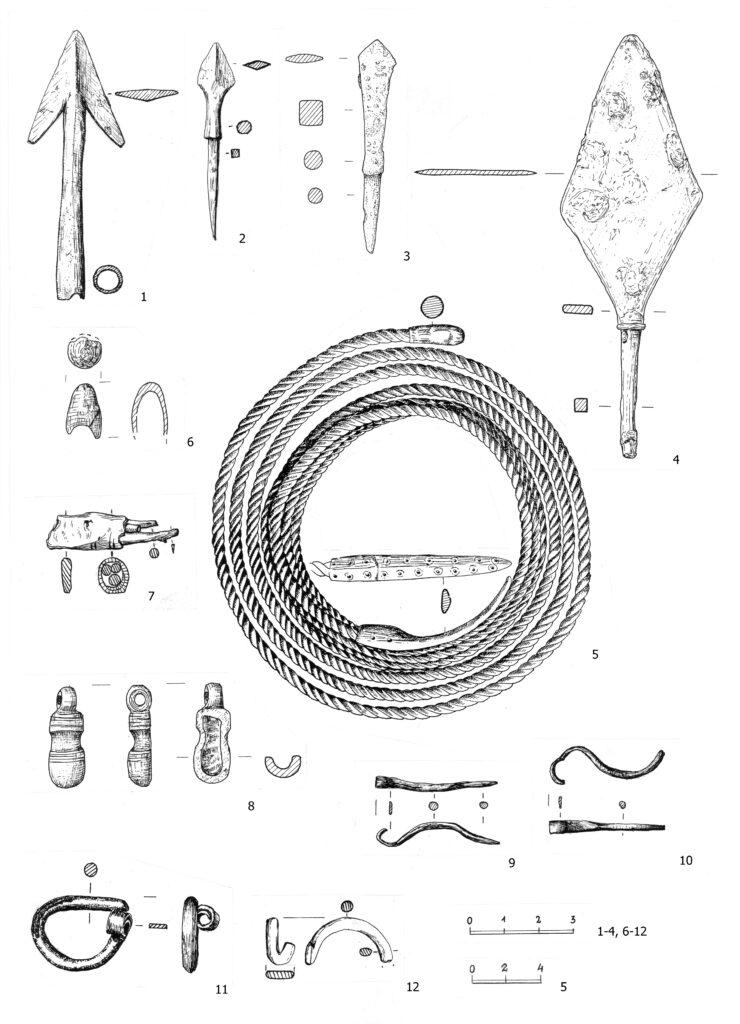 Kasinėjimų metu čia buvo rastas apie 1000 bronzinių papuošalų rinkinys. Ant dalies dirbinių esama tikslingo jų naikinimo žymių. Nežinoma šio lobio paskirtis. Manoma, kad jo savininkas galėjęs būti vietinis jotvingių vadas. Tarp radinių būta ir bronzinių pakabučių – būdingiausių XII–XIII a. jotvingių papuošalų. Jotvingiai savo drabužius susegdavo puošniais segučiais. Pasiturinčios jotvingių moterys dėvėjo ištaigingus rūbus, papuoštus bronziniais (retai sidabriniais) juvelyriniais dirbiniais. Tik neaišku, koks buvo jų statusas militarizuotoje jotvingių bendruomenėje. Galima daryti prielaidą, jog tuomet, kai vyrai vykdavo į karo žygius, joms tekdavo tvarkyti namų ūkius ir vadovauti tarnams.