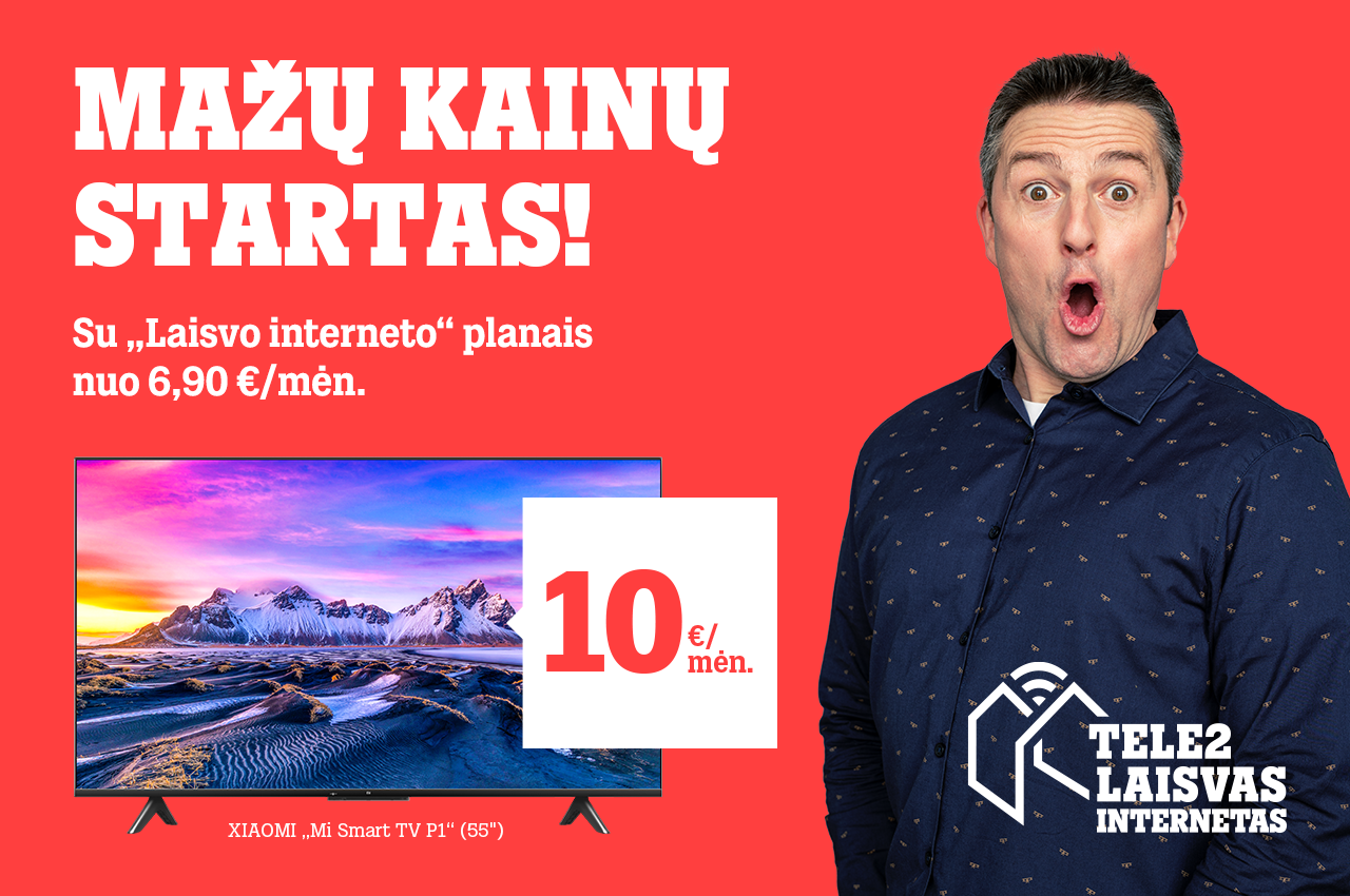 Šios kainos įrenginiams galioja kartu užsisakant 50 GB „Laisvo interneto“ paslaugą (kaina – 6,90 Eur/mėn.).