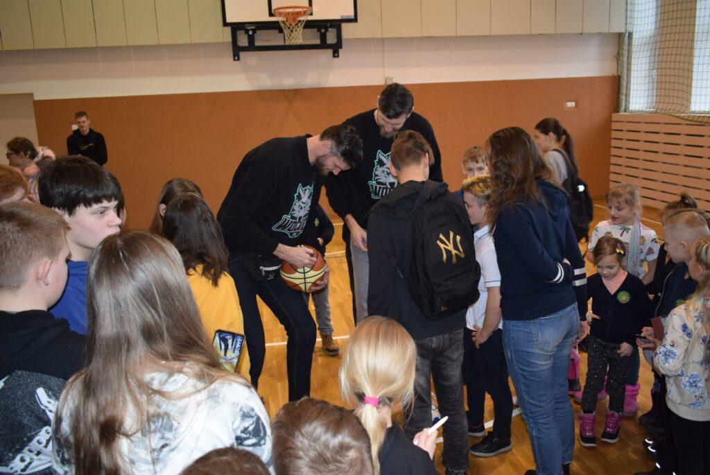 Kalbėdama apie susitikimą su žinomais krepšininkais, direktorė sakė, jog vaikų emocijos buvo puikios, susirinko visa mokykla, atvažiavo dar dvi klasės iš Šventežerio mokyklos. Anot direktorės, vaikai klausė garsių krepšininkų pasakojimų, pažaidė su broliais krepšinį, gavo iš jų prizų.