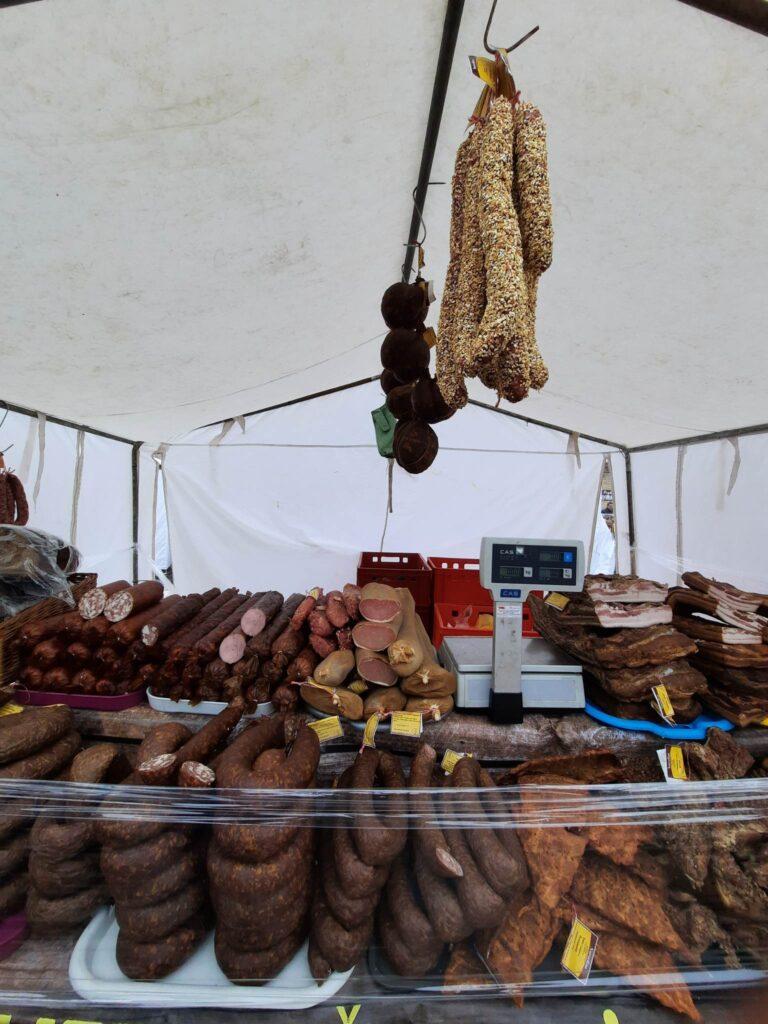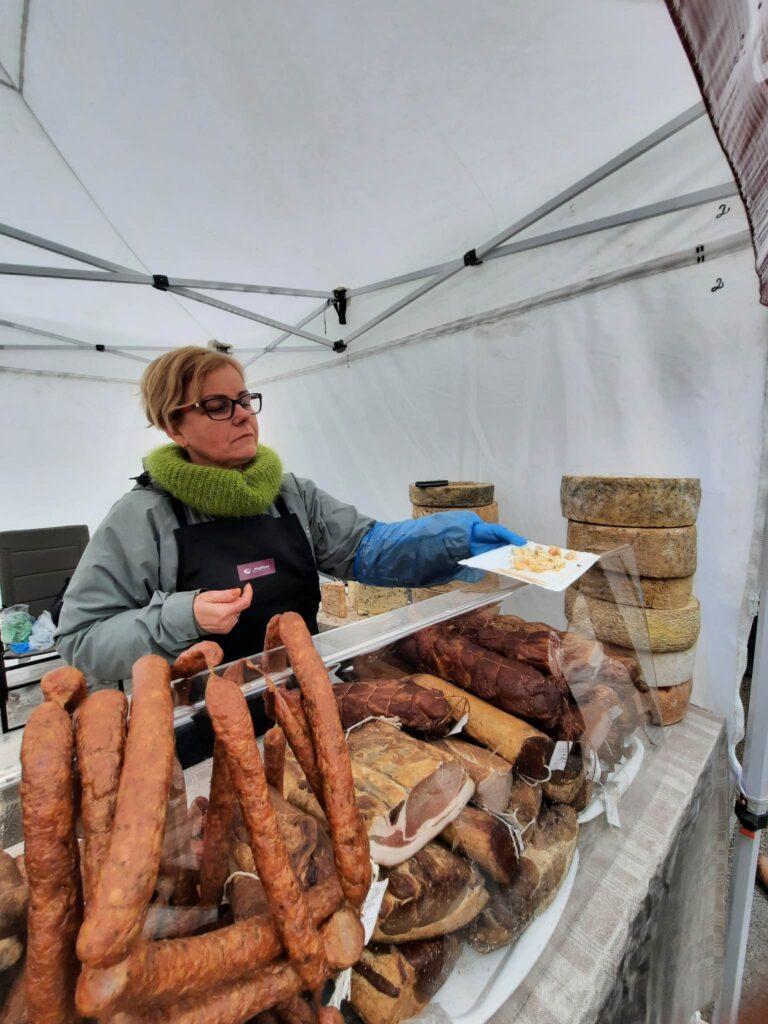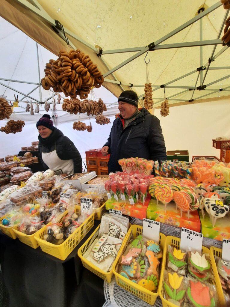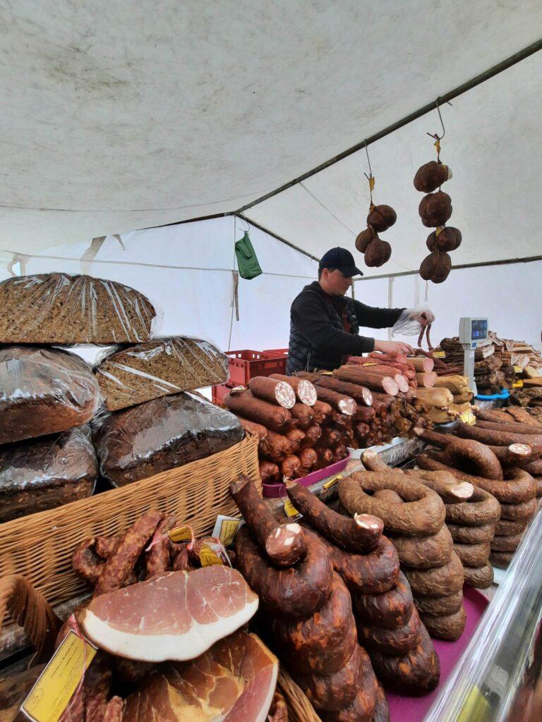 Žmonės labiausiai dairėsi gardumynų namo parsinešti, kažko dar neragauto nusipirkti. O buvo visko. Ir tik ką iš rūkyklos ištraukta žuvimi gardžiai kvepėjo, ir sūrių buvo įvairiausių, „cikras antaninių obuolių sūriukas“ 7–8 eurus kainavo, medaus keksas – 6 Eur, graikinių riešutų pusė kilogramo – 3 eurai. Jų siūlė didžiausias graikinių riešutų augintojas Lietuvoje Algirdas Jušinskas iš Marijampolės, kviesdamas vasarą būtinai apsilankyti jo ūkyje. Kai kas nepigios stintelės paragauti nutarė, į namus nešėsi: kilogramas – 6.90 Eur. Mėsos gaminių kainos jau nieko nestebino. Žmonės pirko gabaliuką šio to: ar lašinių, ar dešrytės, o prie mėsos dar naminės duonos ar kokį šimtalapio gabaliuką – desertui. O kas mokėti 6 ar 7 eurų už šimtalapį nenorėjo, tas galėjo šimtalapio pyragėlį nusipirkti ir paragauti. „Iš šimtalapio tešlos pagamintas su aguonomis, varške“, – aiškino prekeivė. Eilė pirkėjų būriavosi prie pyragų su varške, su vyšniomis, su obuoliais – po 4 Eur kainuojančius. Jie itin paklausūs, nors pabrangę, buvo 3–3.50 Eur. Saldainių, grybukų ir dar kokių tik nori saldžių žvėriukų – apsčiai. Ir barankų buvo. Koks gi kermošius be jų? Bet žmonės nesigriebė barankų pirkti. Pirko tai, kas jiems krito į akį, ką patys ragaus parėję namo ir dar svečią pavaišins. Kainos pirkėjų nedžiugino, tai ir pirkiniai labiau apgalvoti. O ir užvalgyti kermošiuje nepigus malonumas: žirniai su spirgiais – 4 Eur, o paskui jau viskas tik brangyn. Vienas vyrukas atnešė putino uogų. „Dabar priskyniau“, – prisipažino jis. Uogutės pašalusios, bet tikrai tinkamos, kaip pats skynėjas sakė, į arbatą nepamainomas dalykas. „3 eurai krepšelis. Vaistas nuo visų ligų“, – tikino jis. Uogų pavadinimas čia ne prie ko, bet netoliese išgirdau rusų kalba kalbančią moterį. Tuoj susipažinome su ukrainiete, kuri pasisakė esanti iš Zaporižės. „Mes gyvenome visai netoli elektrinės. Mūsų butas, žinau, kad nesugriautas kol kas. Išvažiavau dėl sūnaus“, – apkabina moteris devynmetį sūnų. Pasakoja, jog dirba, nes turi pragyventi, dėkoja, ką duoda mūsų valstybė, bet to nepakanka, norisi ir pačiai dirbti, užsidirbti. Ir vis klausia ašaras braukdama: „Ko jie pas mus atėjo? Mes gerai gyvenome.“ Atsisveikiname, o ji toliau panyra į lietuvišką kermošiaus šurmulį.