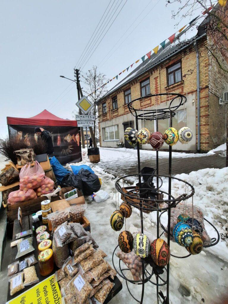 Kad ne už kalnų Velykos, priminė visokiausiomis priemonėmis dekoruoti kiaušiniai, kitos jau Velykoms pagamintos dekoracijos, tačiau čia pat mezgėjos siūlė šiltų vilnonių kojinių, kurių tądien, ne paslaptis, tikrai reikėjo, kas apsiavė, nepasigailėjo. Tiesa, vilnoniai siūlai taip ir liko per visą kermošių net neišimti iš krepšių: matyt, megzti jau nesiruošia, kiek primezgė, tiek gana, šiltesnės dienos jau vis tiek ateis.