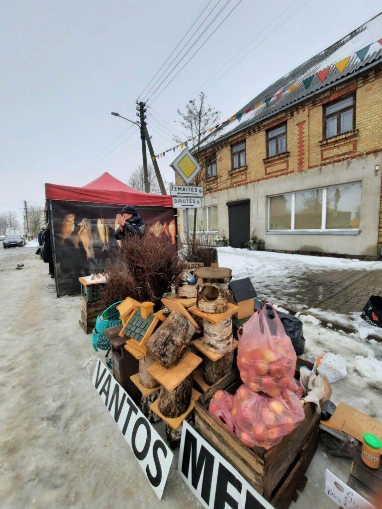 Kad ir kaip sunkiai braunasi pavasaris, tačiau vis tiek atšils, o kai atšils, pirmiausia, ko gero, reiks kiemą pasišluoti. Šluotų kermošiuje buvo, kaip patys rišėjai sakė, visokių modelių: mažesnių, didesnių, paprastų ir ant koto. „Specialiai raganoms“, – kvatojo jie. Kaina, kaip pripažino pirkėjai, „su Dievo miera“ – 4–5 eurai. Parskrendantiems paukščiukams priruošta būstų. Inkilai po 8 eurus. O geidžiamiausia prekė, kurios ant prekystalio greit neliko, tai švilpynės – paukštukai. Vaikai jų labai norėjo, mat jos „navatnesnės“: vandens reikia įpilti, kad gražiai švilptų. Ir kašikų pripinta, tik pirkėjai iškart nesipuolė pirkti: bulvių sodinti, matyt, dar nesiruošia. O tas, iš vytelių, dailias pintines žmonės apžiūrinėjo, ponios gal jau apie grybavimo sezoną pagalvojo. Iš žolių pintus dirbinius rečiau tepamatysi. Kermošiuje jų buvo. Pynėja rodė prieš 3 metus nupintą indą, kuris atrodė, lyg vakar pintas. „Jie tikrai ilgai tarnauja, nors nėra dar tokie populiarūs, kaip iš vytelių pinti dirbiniai”, – sakė ji.