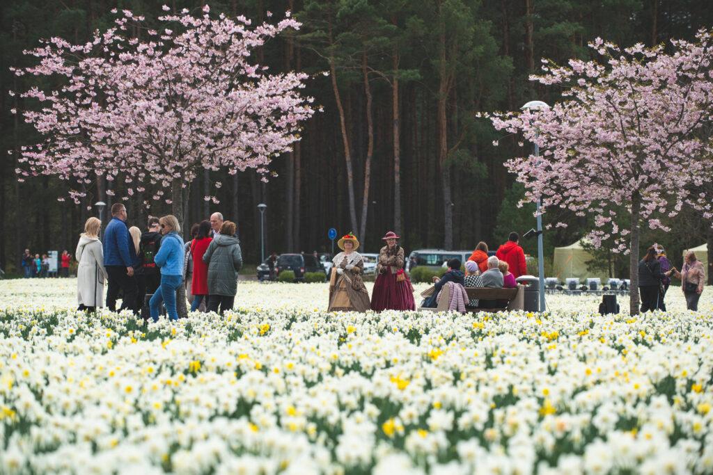 Garsiausi Lietuvoje narcizų laukai jau prasiskleidė visu grožiu. Pirmosios pavasario gėlės užima beveik visą laisvą parko plotą (14,4 ha) ir jų žydi beveik milijonas. Gelsvų atspalvių jūrą įspūdingai papildo rausvų japoniškų sakurų alėja abipus pėsčiųjų tako nuo ežero link tvenkinio. Ne vienas tvirtina, kad nereikia kažkokių stebuklų – laukus užtvindžiusių žiedų grožis ir svaiginantis jų kvapas kviečia tiesiog vaikščioti, sėdėti parke ir paskęsti jausmuose.