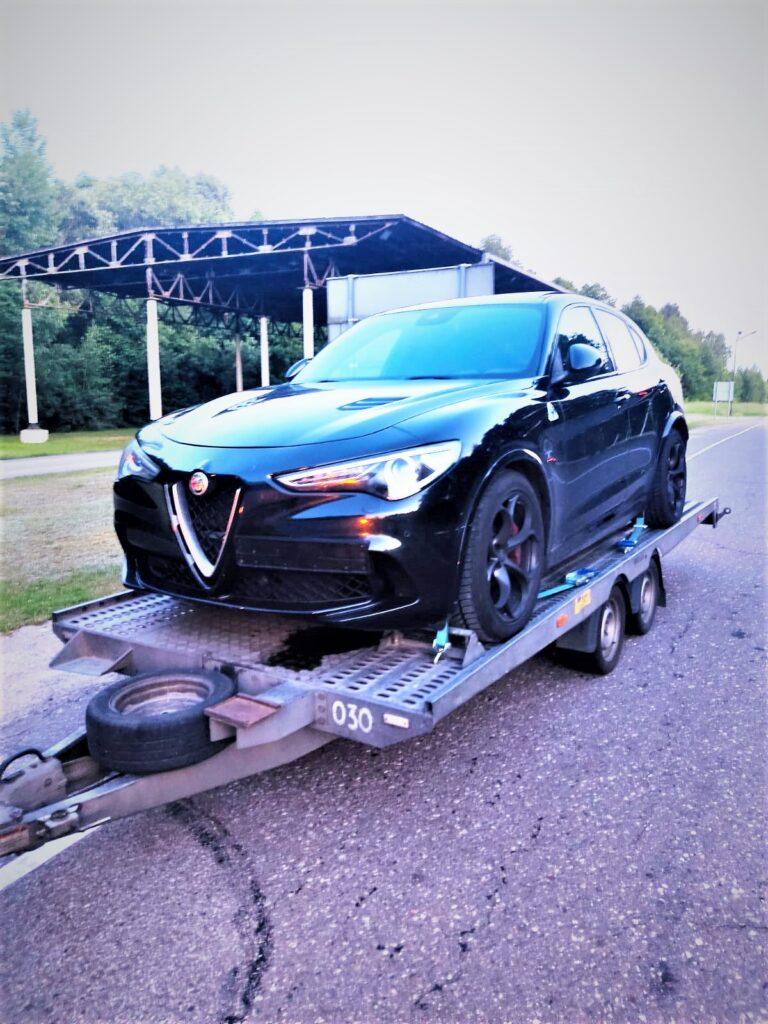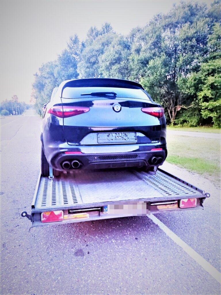 Tačiau jie kilo dėl kito automobilio – ant priekabos gabento „Alfa Romeo“ be registracijos numerių. Kalvarijos pasieniečiai nustatė, kad šio 2018 m. laidos automobilio ieško Nyderlandų policija – paieška Interpolo kanalais buvo paskelbta pernai lapkritį. Apytikrė jo vertė – 60 000 eurų.
