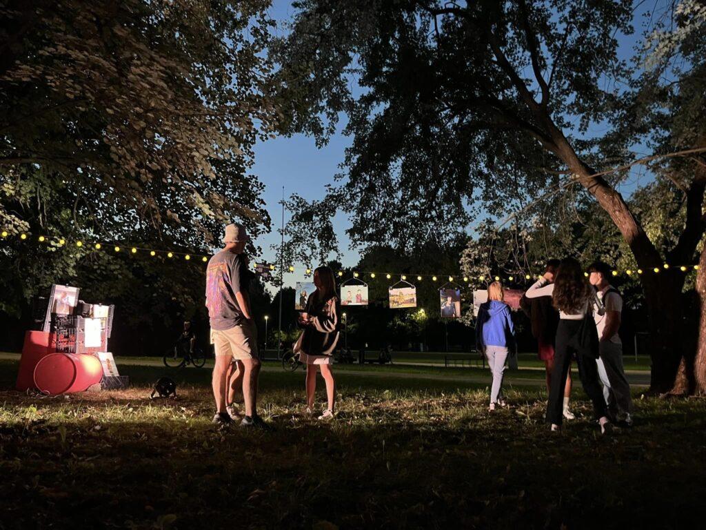 Praėjusį penktadienio vakarą akį traukė Lazdijų miesto parko netradicinėje erdvėje įsikūręs jaukumu ir kūryba alsuojantis kiemelis. Ten vyko tradicinis fotografijų, muzikos ir šviesų festivalis „Po dangum“.