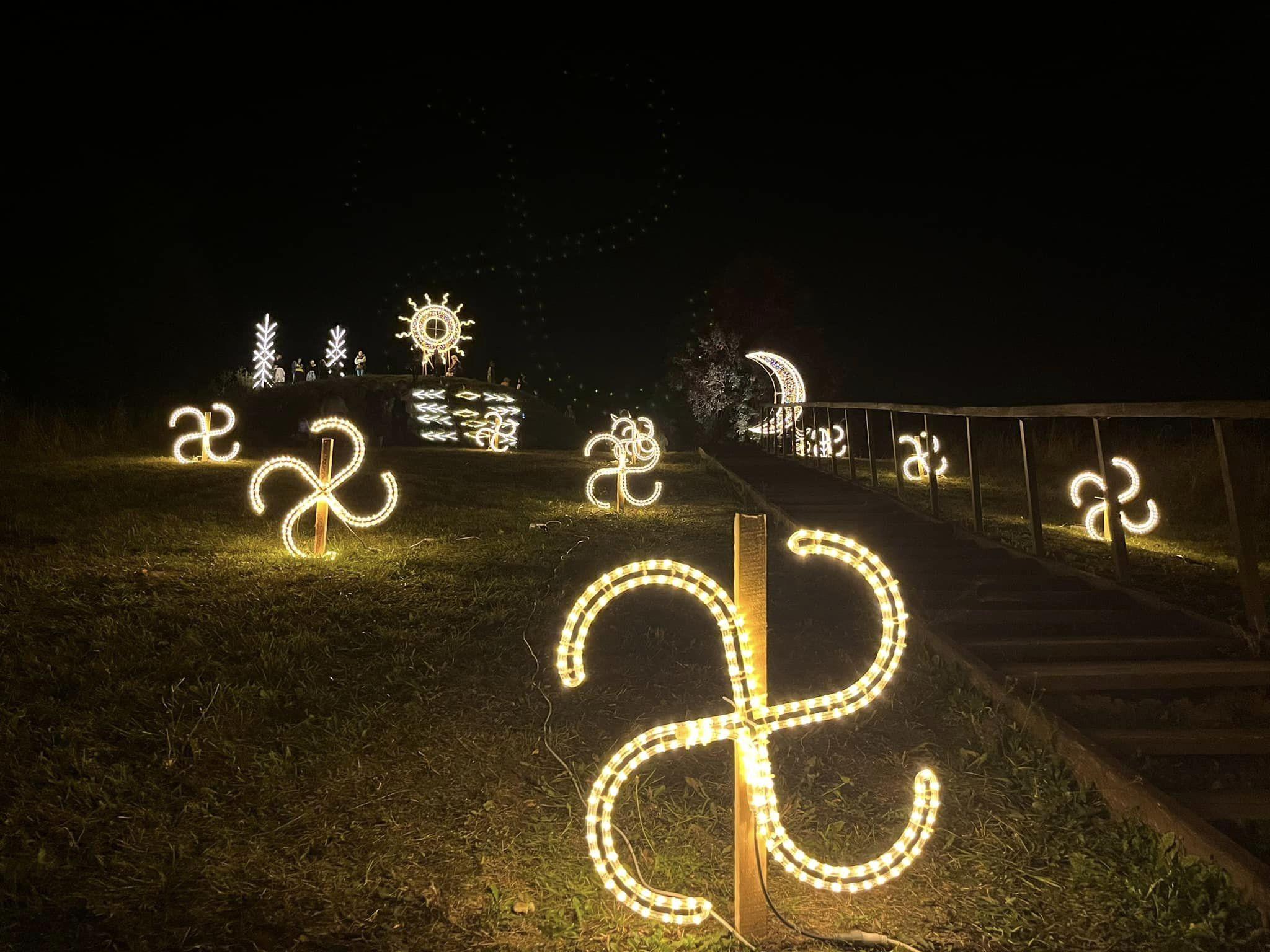 Pasidomėjus, kas pagamino šviečiančias figūras ir ką jos reiškia, kultūros centro darbuotoja Eglė Kubilienė sakė, jog šviečiančios skulptūros – tai jotvingiški ženklai, kurie papuošė Rudaminos piliakalnį. Tokių simbolių kultūros centro darbuotojai išdėliojo 86. Piliakalnio viršūnėje meniškai buvo apšviesti ir medžiai.