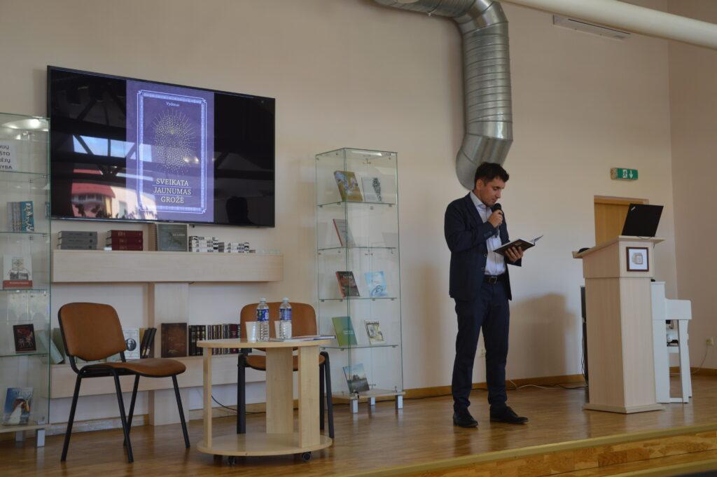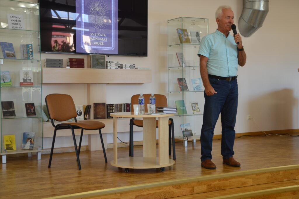 Tiesa, jis klausytojų ilgai nevargino savo kalbomis, kvietė patiems paskaityti knygą. „Ilgai sėdėti nesveika“, – konstatavo jis.