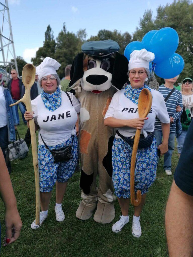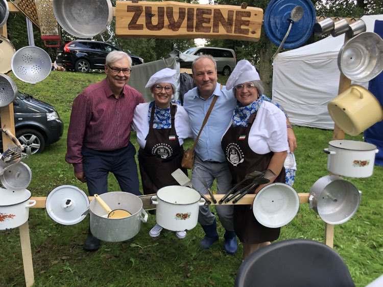 Lazdijų krašto komanda, kaip ir kasmet, išsiskyrė savo originalumu, savitumu. „Lazdijų vardas ne vieną ir ne du kartus buvo minimas. Be to, pasigesta dar vienos mūsų krašto komandos. Liūdna, kad buvome vieni, būtų 78 komandos dalyvavusios čempionate. Kita vertus, tai tik parodė, kad Lazdijus žino, jei žmonės pasigedo mūsų kolegų. Džiugu, kad Lazdijus žino visas Pamario kraštas“, – sako Gegutės kaimo bendruomenės pirmininkė Vilma Sabaliauskienė. „Janės ir Pranės“ komanda virė žuvies sriubą. „Mes, moteriškės, iš kaimo, tai mums reikia kaip reikiant pavalgyti. Receptūra ta pati, kaip ir kasmet, su daug daug meilės, daug džiaugsmo, daug gerų emocijų. Mes kitaip nemokame“, – vis pajuokauja Vilma Sabaliauskienė, įkūnijanti Janę. Po kiekvieno čempionato Vilma vis dėkoja Ramunei Janavičiūtei, kuri pirmoji pakvietė sudalyvauti tokiame čempionate kartu su Veisiejų komanda. „Pirmi metai Rusnėje ir buvo su Ramune, paskui važiavome jau mūsų bendruomenė, bet sriubą virė Aivaras, o dabar jau 4 metus verda žuvies sriubą Janė ir Pranė. Tai šiemet jau 6 kartas čempionate mums buvo“, – sako ji. Paklausta, kaip komisija iš 77 žuvienių ir žuvies sriubų išrenka skaniausią, Vilma sakosi negalinti pasakyti, reiktų komisijos klausti, bet jai, sako, nereiktų ragauti visų: jau vien tik pažiūrėjus, vienos žuvienės norisi paragauti, kitos – ne. „Vienais metais mums kaimynai davė paragauti žuvienės su kopūstais“, – prisimena moteris patikindama, kad žuvienių būna su pačiais netikėčiausiais ingredientais.