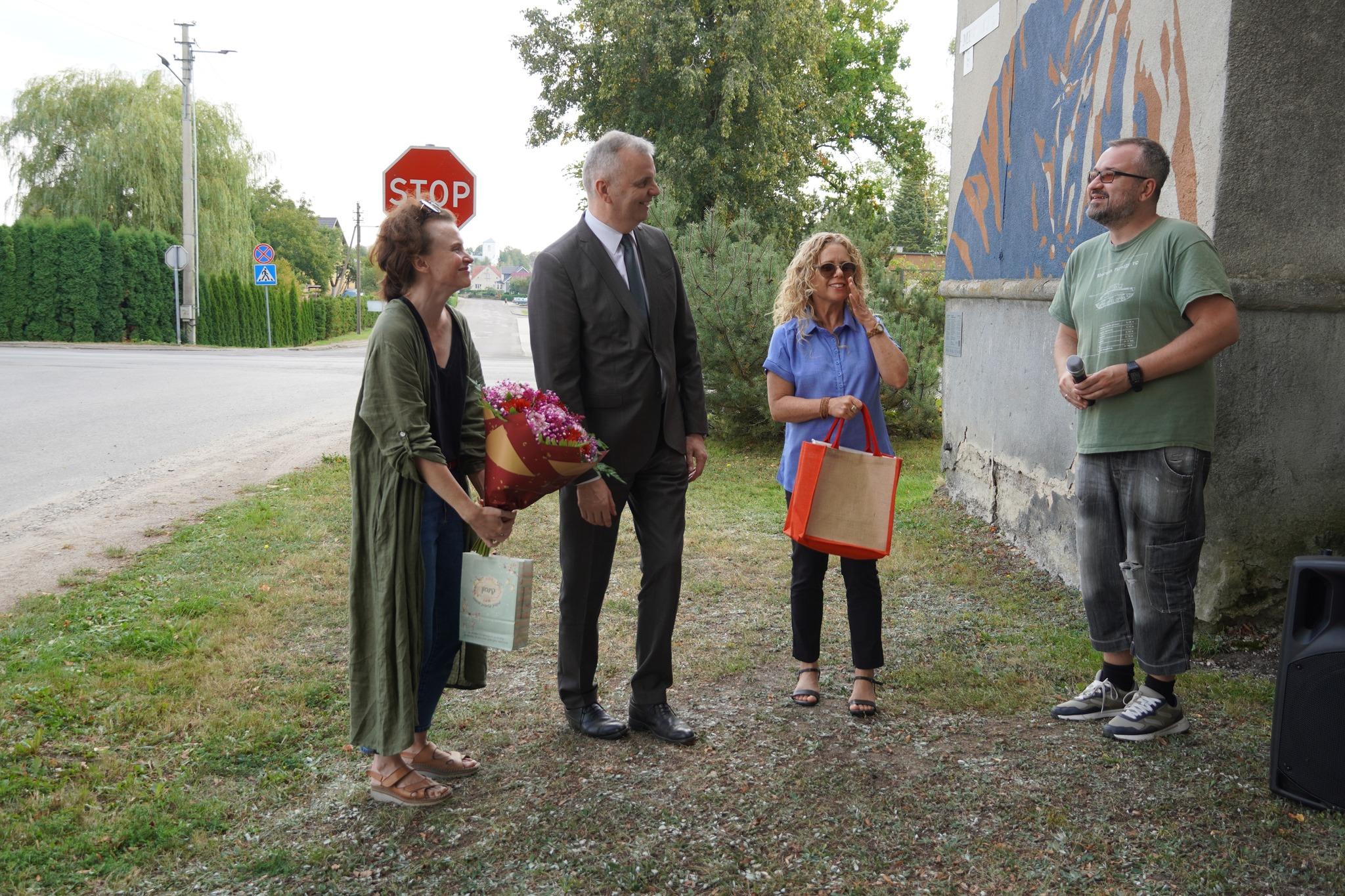 Dailininkei už prasmingą projektą padėkojo savivaldybės vicemeras Dalius Mockevičius, Lazdijų kultūros centro direktorius Arūnas Sujeta įteikė padėką. Iš vicemero rankų suvenyrą – lietuviško medaus, žolelių arbatos ir lino staltiesę – gavo ir dabar jau žymios Seirijų žydės Rivkos Liubianski proanūkė Shirley Levavi, nuoširdžiai bendradarbiavusi ir padėjusi, kad ši unikali neofreska gimtų.