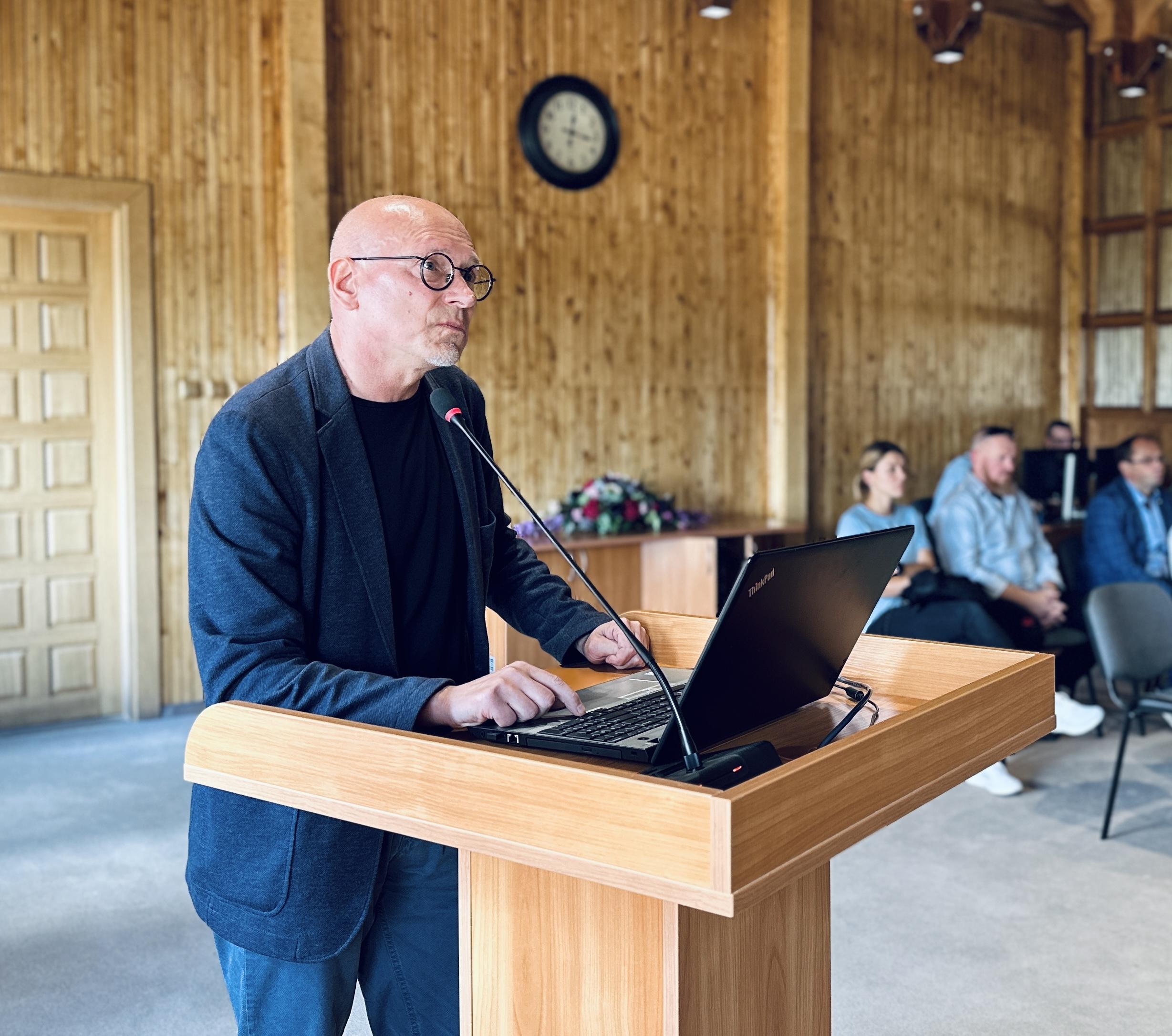 Viziją pristatyti atvyko centro vyresnysis patarėjas prof. Algis Vyšniūnas, istorinės atminties įamžinimo skyriaus vedėjas Vitas Karčiauskas ir architektas Vytenis Rudokas.