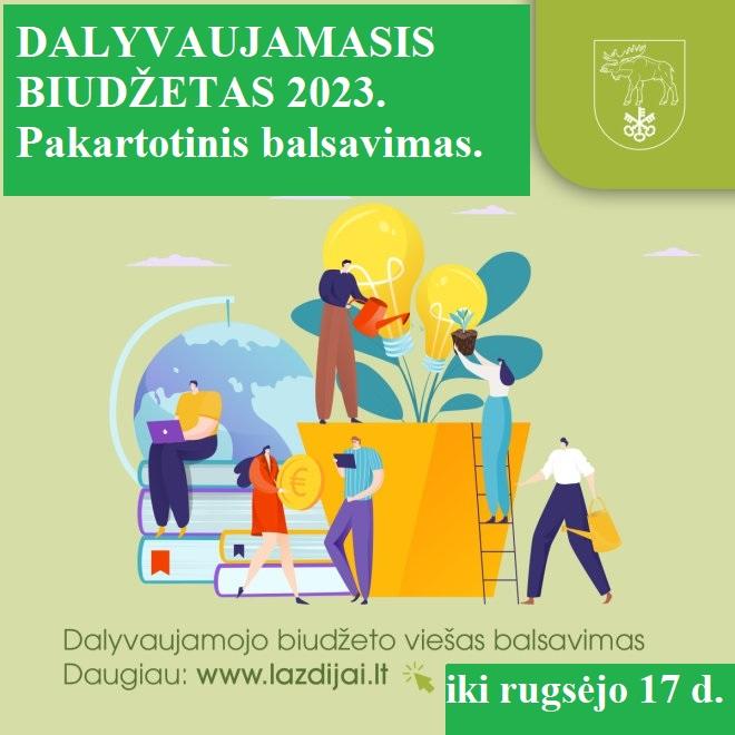 Pakartotiniame balsavime dalyvauja visi šiais metais pateikti projektai, kurie atitiko keliamus reikalavimus. Tokių iš 24 buvo 20. Projektų aprašymus rasite: www.lazdijai.lt/data/public/uploads/2023/06/projektu-aprasymai-balsavimui.pdf.
