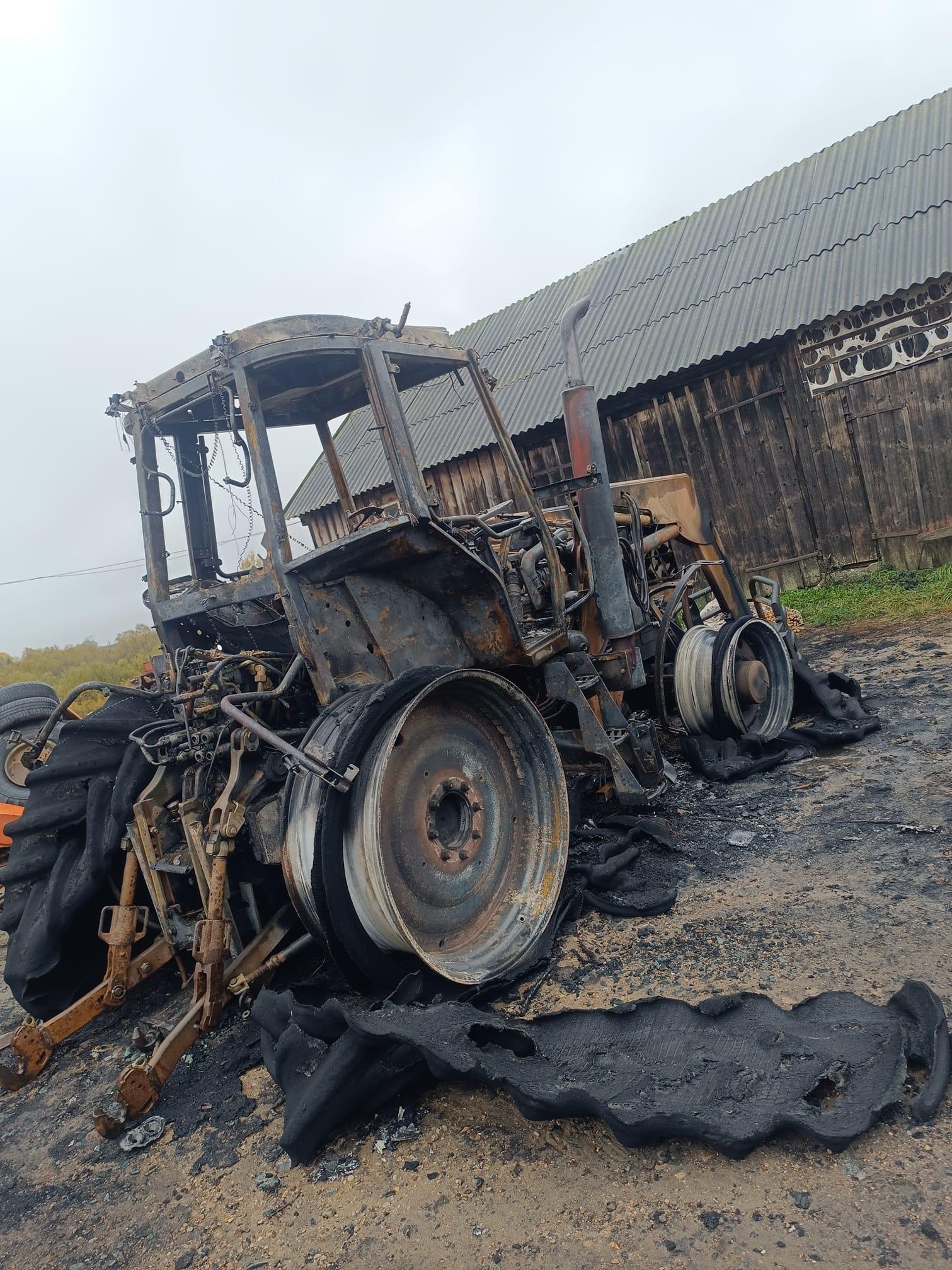 Lazdijų rajone sekmadienio vakarą sudegė traktorius, gaisras kilo visai netoli ūkinio pastato su veršeliais.