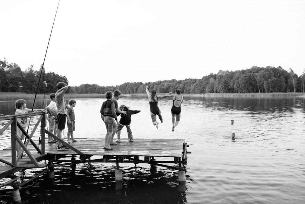 Vakare girliandų šviesoj vaikai sulipo ant didelio akmens ir juokėsi iš savo nejuokingų juokų, vėliau ėmė lakstyti, tildėm, nepavyko, vakarojantys aplink laužą paprašė truputį rimties – nepavyko, kur čia sutramdysi, pažiro nakty, aukštose žolėse žaidė gaudynių.