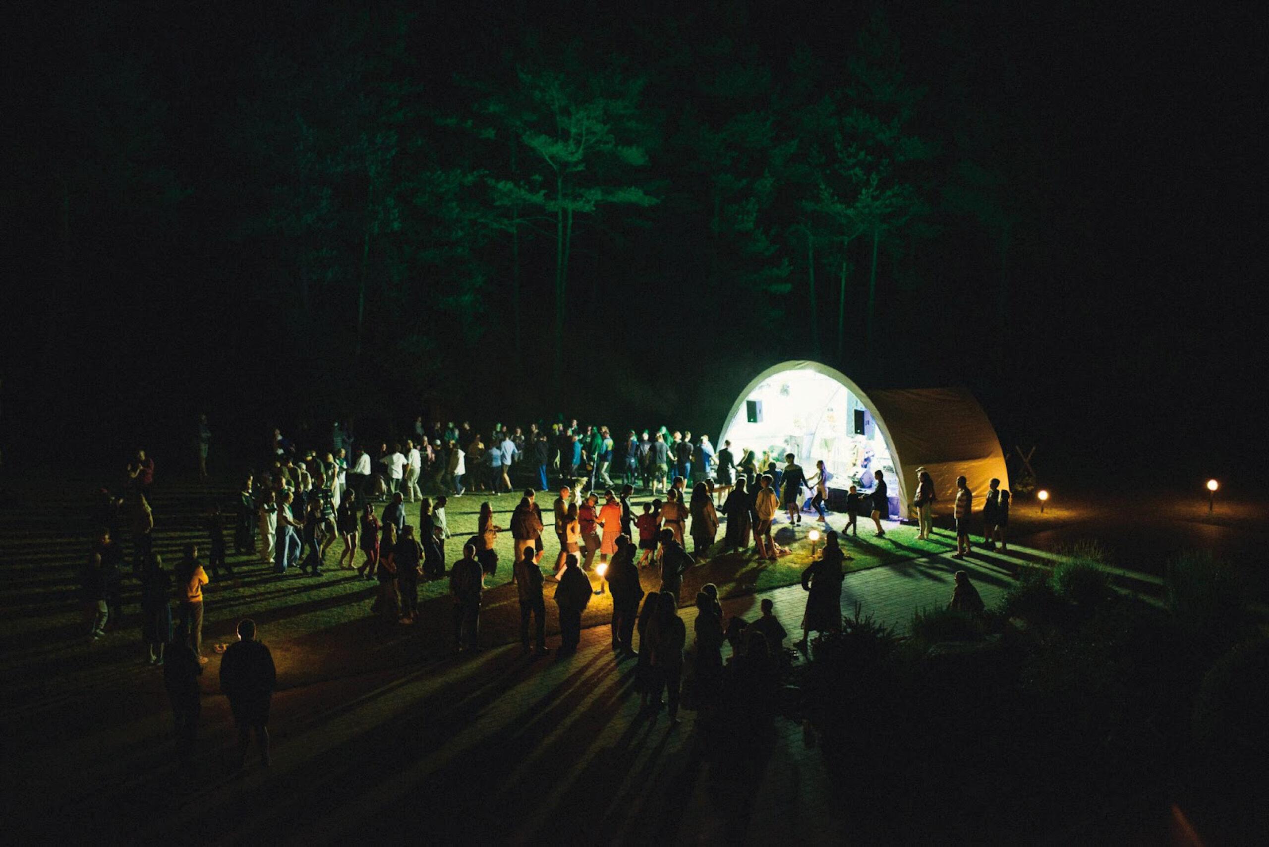 Tuomet romantiškai apšviestais takais keliavom į vakaronę, ant scenos groja muzikantai, visi šoka, ten ir mano kaimynė iš Lentvario, matau, mokino šokti Danicą.