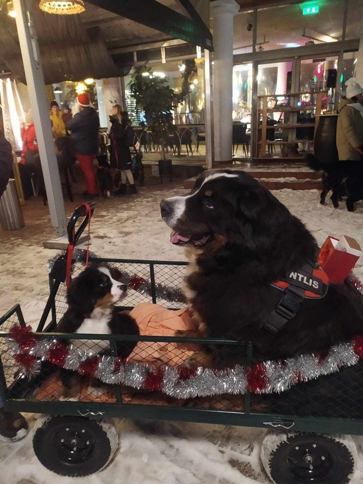 Pajudėjo kalėdinis karavanas iš Alytaus Dainų slėnio, suko pagrindine miesto gatve, vyko į Druskininkus. „Šventė ne tik mums patiems, bet ir visiems, kurie galėjo tai matyti. Žmonės mojavo, filmavo, nes reginys išties įspūdingas, ypač sutemus. Važiavo apie 30 automobilių. Visiems labai patiko pernai metų karavanas, tad šiemet dar daugiau žmonių prisijungė. Šventinė nuotaika lydėjo visą laiką, praleistą kartu su bendraminčiais ir augintiniais“, – pasakoja Loreta. Kalėdinė muzika įnešė šventinės dvasios, kuria pasidalinta su visais aplinkiniais. Labiausia stebėjusius reginį džiugino, be abejo, keturkojai draugai: nuo mažiausių veislių atstovų iki didžiausių, nuo labai jaunų šuniukų iki senjorų. „Vienas Berno zenenhundų veislės senjoras buvo vežamas specialiai jam skirtame vežimėlyje. Kadangi šeimininkai dalyvavo renginyje, o šuniukui jau sunku paeiti, tad jis buvo vežamas kalėdiškai išpuoštame vežimėlyje“, – pasakoja Loreta. Kalėdiniame karavane dalyvavo daug veislių šunų: kavalieriaus karaliaus Karolio spanielis, senbernaras, volfšpicai, Airių seteris, akitos, Labradoro retriveriai, vokiečių aviganiai, ispanų vandens šuo. Druskininkuose gausi, pasipuošusi kalėdiniais kostiumais šunų mylėtojų eisena su savo keturkojais draugais patraukė prie pagrindinės miesto eglės. „Žmonės tikrai labai myli šunis. Pamatę prašė leisti paglostyti, domėjosi veislėmis, klausinėjo. Tiek daug šuniukų vienoje vietoje ne kasdien pamatysi, tad susižavėję žmonės tiesiog aikčiojo iš nuostabos. Manau, kad kai kuriuos toks reginys paskatins įsigyti šuniuką ar tiesiog priglausti iš prieglaudos“, – įsitikinusi Loreta.