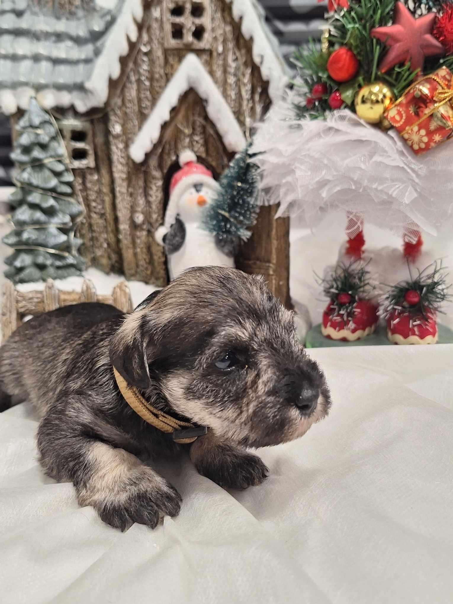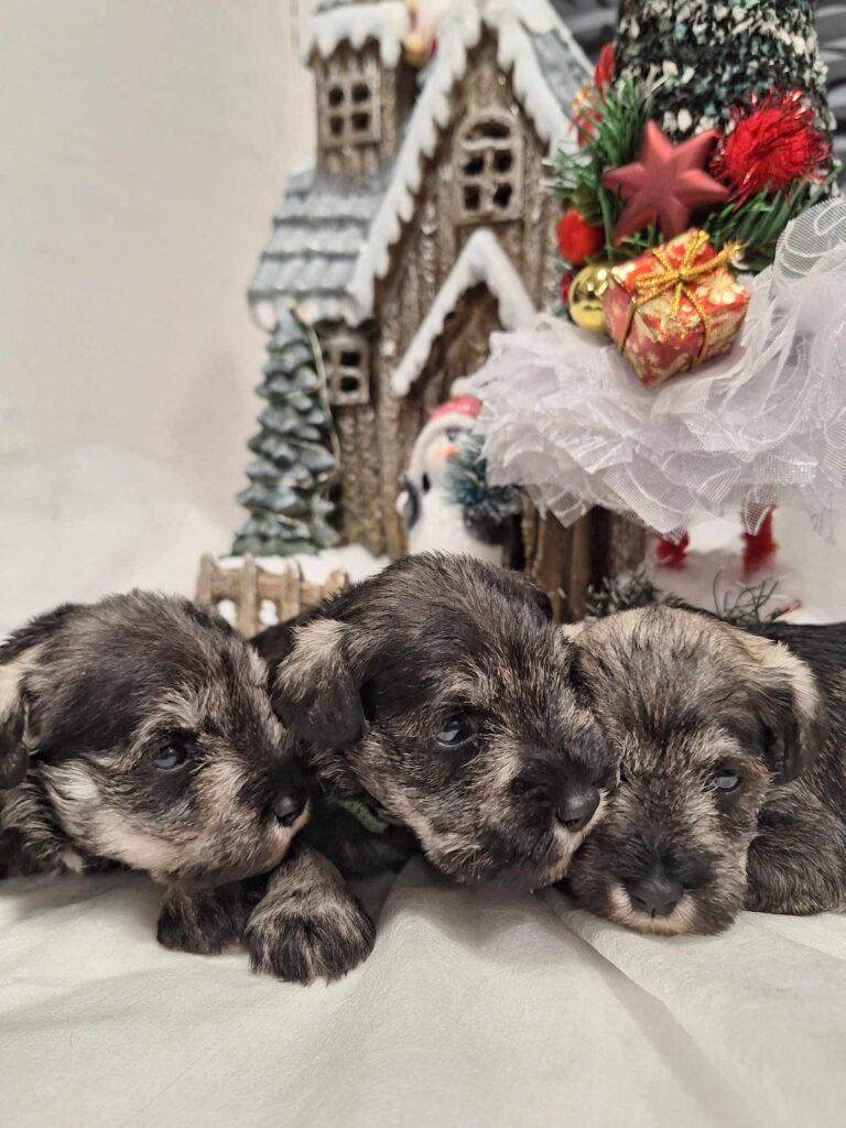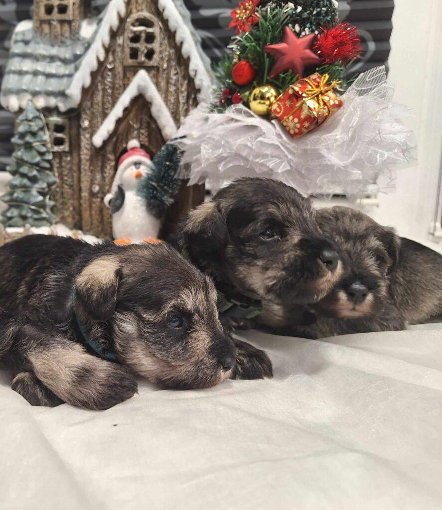 Šiemet į kalėdinį renginį Loretos šeimyna atvyko tik su viena savo augintine. „Kitos dvi mano šunytės, Izidė ir Vyšnia, cvergšnaucerių veislės kalytės, prižiūri vaikus, turi po vadą, tad negalėjo dalyvauti“, – sako šeimininkė. Tad šiemet šventėje dalyvavo tik cvergšnaucerių veislės kalytė Hilda. Dabar Loretos namuose, didžiuliuose kambario voljeruose, įsikūrusios dvi kalytės su 14 šuniukų, mat šuniukai dar maži, kvailiukai, tad svarbu, kad kur nenueitų, todėl saugiai sau gyvena savo voljeruose. Loreta sako, kad stebėtis šuniukų gausa nereiktų, mat šios veislės šunų vada įprastai būna 5–7 šuniukai. „Tačiau galiu pasakyti, kad viena mano kalytė buvo atvedusi net 8 šuniukus“, – pastebi Loreta. Šeimininkė prisipažįsta, kad ji turėjo lyg kokią nuojautą, kad šiemet vados bus gausios. „Vyro klausiau, ką darysime, kai po namus lakstys 14 šuniukų“, – prisipažįsta Loreta. Taip ir buvo: pirmiausia gimė 7 mažyliai, o po savaitės sulaukta dar vienos vados, taip pat 7 šuniukų. „Kol kas šuniukams dar anksti iškeliauti į naujus namus, mat vieniems 2 savaitės, kitiems – trys“, – atkreipia dėmesį Loreta. Į naujus namučius jie keliaus, kai bus 2 mėnesių. „Jau dabar žmonės rezervuoja, užsiprašo, bet dar tikrai galima išsirinkti sau mieliausią šuniuką“, – sako ji. Paklausta apie šių grynaveislių mažylių kainas, Loreta sako, kad didžiausios kainos buvo per karantiną, dabar – mažesnės. Bandžiau susižinoti vis tik, kiek toks šuniukas gali kainuoti. Pasirodo, kainos labai įvairios: gali siekti 900 eurų, bet tai toli gražu ne pati didžiausia kaina, kai kur ji gerokai didesnė – nuo 1200 iki 1800 eurų. „Šuniuko kaina priklauso nuo tėvų titulų, žiūrima, ar šuniukai atitinka veislės standartus, ar neturi kokių trūkumų, ar taisyklingas sąkandis. Kartais gali pasitaikyti ir veislės broko, tada tokie šuniukai parduodami pigiau ir jų veisti jau negalima. O visus standartus atitinkančio šuniuko kaina prasideda nuo 900 eurų ir gali siekti ir pora tūkstančių“, – paaiškina Loreta.