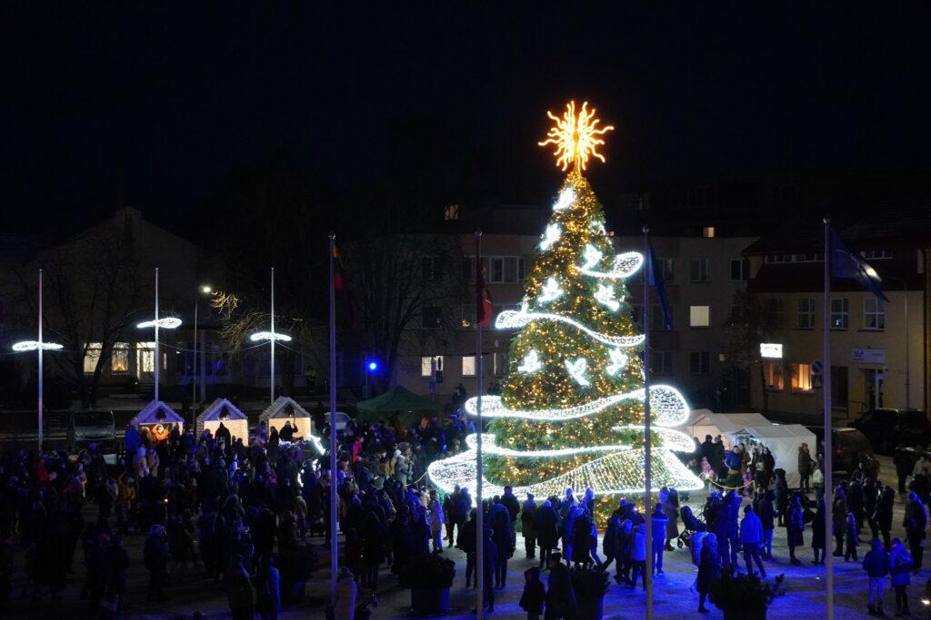 Lazdijuose nušvito S. Gedos eilėraščių įkvėpta pasakiška eglė.