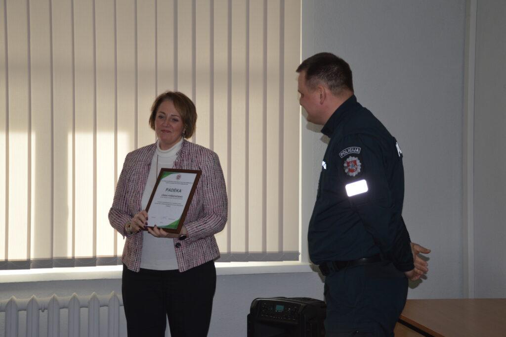Rajono policijos komisariate šiuo metu dirba 47 pareigūnai. „Mūsų komisariate pareigūnų pakanka. Pareigūnai gerai parengti, tad ne paslaptis, jog sulaukia pasiūlymų pereiti dirbti į kitas tarnybas“, – pastebi Lazdijų rajono policijos komisariato viršininkas Mantas Struckas. Ne veltui, įteikdamas padėkas Lazdijų Motiejaus Gustaičio gimnazijos direktorei Erikai Poškevičienei už aktyvų bendradarbiavimą ir pagalbą policijos pareigūnams vykdant bendrąją prevencinę veiklą ugdymo įstaigoje bei Lazdijų rajono savivaldybei už aktyvų bendradarbiavimą, partnerystę bei iniciatyvas, kuriant saugią aplinką Lazdijų rajono savivaldybės teritorijoje, rajono policijos komisariato viršininkas M. Struckas dėkojo ir savo kolegoms, visiems kartu ir kiekvienam atskirai, rajono komisariate dirbantiems pareigūnams. Taip pat visiems partneriams, ypač rajono seniūnijų seniūnams, kurie, anot viršininko, itin geri pagalbininkai. „Jūs – mūsų akys ir ausys. Viską žinote savo seniūnijų teritorijose“, – sakė viršininkas.