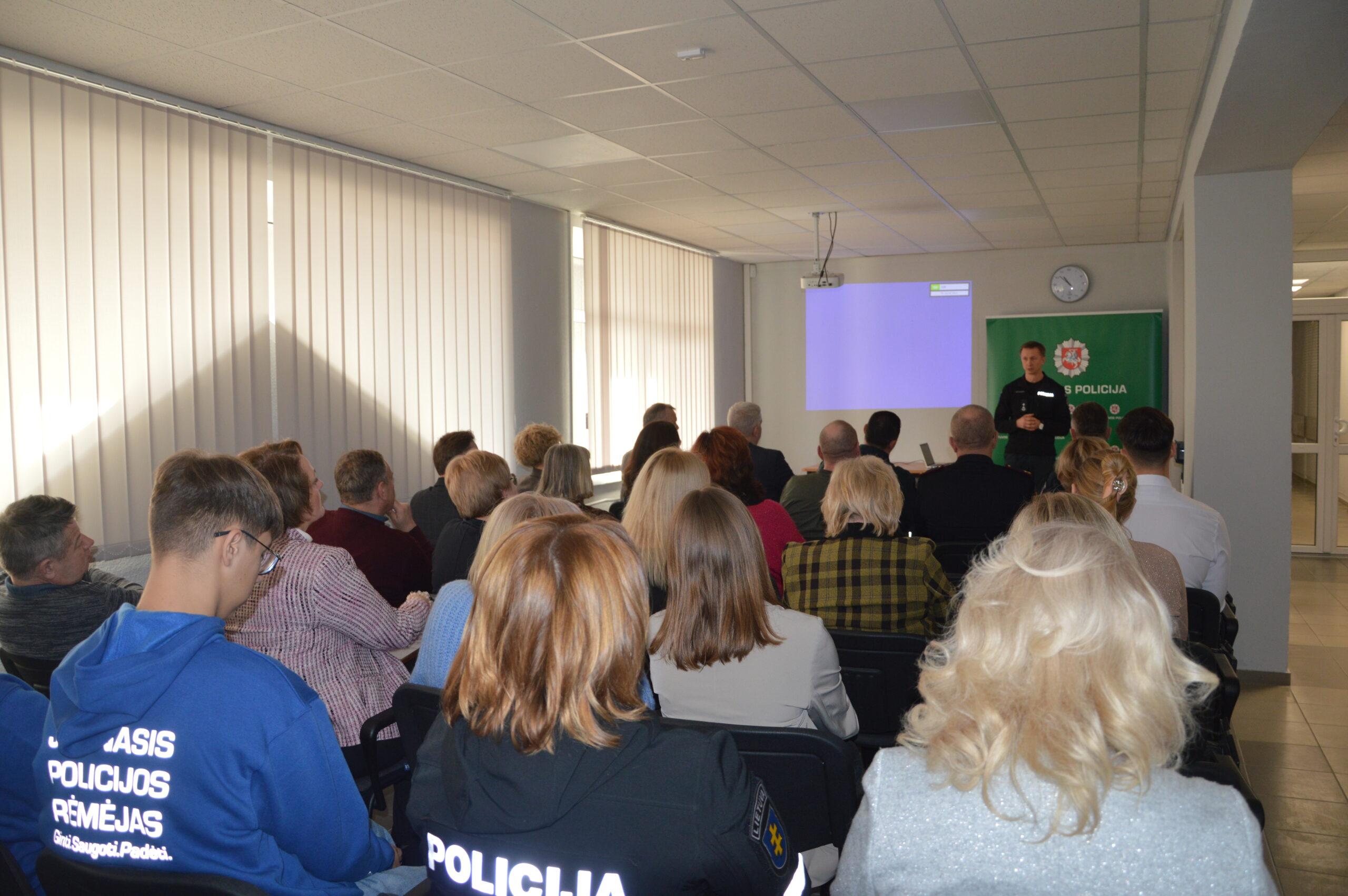 Rajono policijos komisariato viršininkas M. Struckas pristatė praėjusiais metais pasiektus rezultatus, aptarė svarbiausius pasiekimus, tiriant nusikalstamas veikas, apžvelgė praėjusių metų nusikalstamumo padėtį, atkreipė dėmesį į nusikalstamumo tendencijas mūsų rajone.