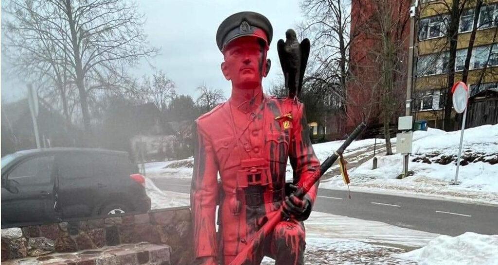 Policija pradėjo tyrimą dėl Merkinėje dažais apipilto paminklo A. Ramanauskui-Vanagui