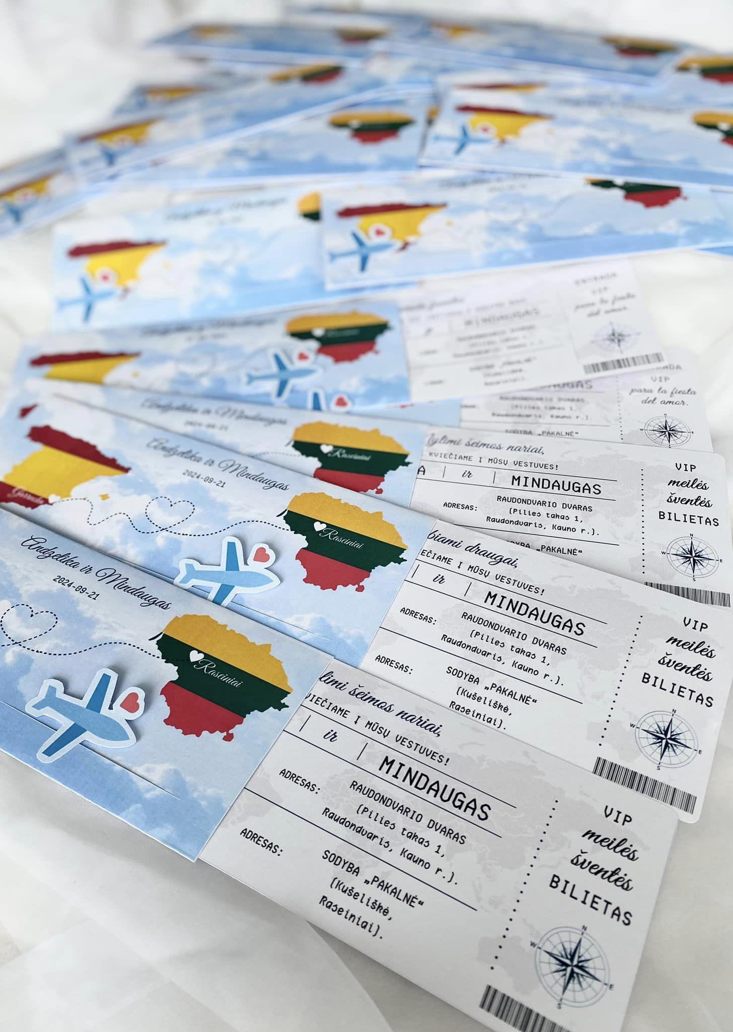 – Visai neseniai gaminau tikrai išskirtinius kvietimus, kurie pareikalavo labai daug laiko juos maketuojant prie kompiuterio, spausdinant pavyzdžius, bandant lankstyti, karpyti. Ne viena dešimtis popieriaus lapų buvo sugadinta, kol pavyko pasiekti galutinį rezultatą. Man parašė jaunoji, kuri yra iš Ispanijos, tačiau savo meilę surado Raseiniuose. Ji – stiuardesė ir prašė, kad kvietime atsispindėtų Ispanija, Lietuva, lėktuvai, tad sukūriau „slide invitation“ (angl.) variantą. Jį apibūdinti labai sunku, jei sudomino, vaizdo įrašus ir nuotraukas su šiais kvietimais galima surasti „Pakviesk mane“ puslapyje.