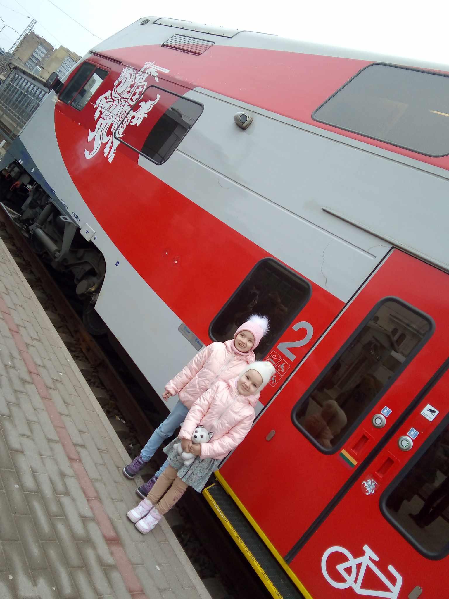 Ne kasdien tenka važiuoti traukiniu: dažniausiai šeima keliauja automobiliu arba pėsčiomis. Sesutėms patiko kelionė traukiniu.