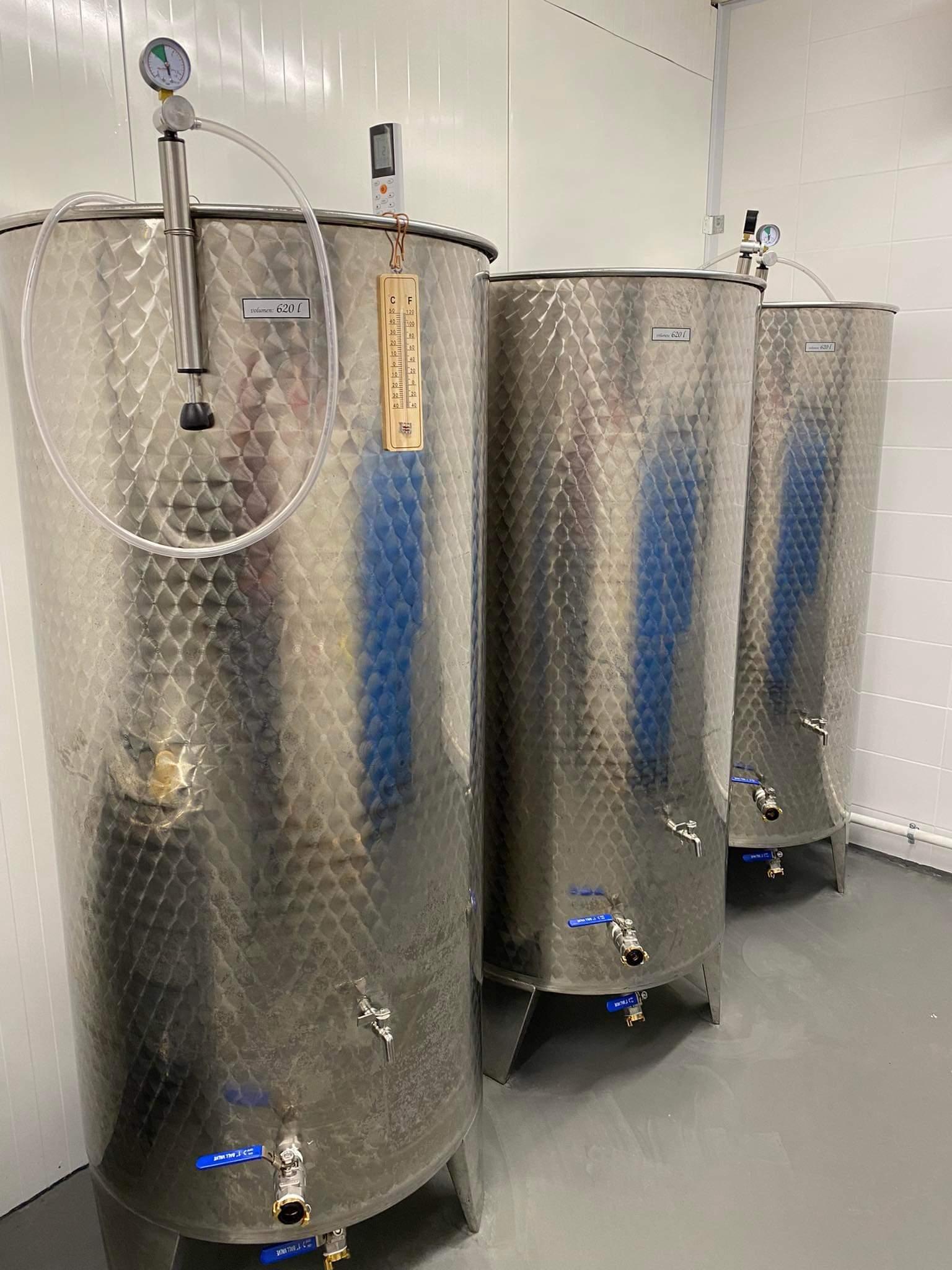 „Uoga subręsta, fermentacija vyksta iki mėnesio, paskui skaidrinimai ir brandinimai. Pavyzdžiui, vyšnių vynas, apdovanotas aukso medaliais, brandinamas su amerikietiškais ąžuolais mažiausiai pusę metų. Yra ir jaunas vynas, kuriam užtenka ir pusantro mėnesio. Labai skiriasi brandinto ir jauno vyno skoniai“, – pasakojo vyndarys.