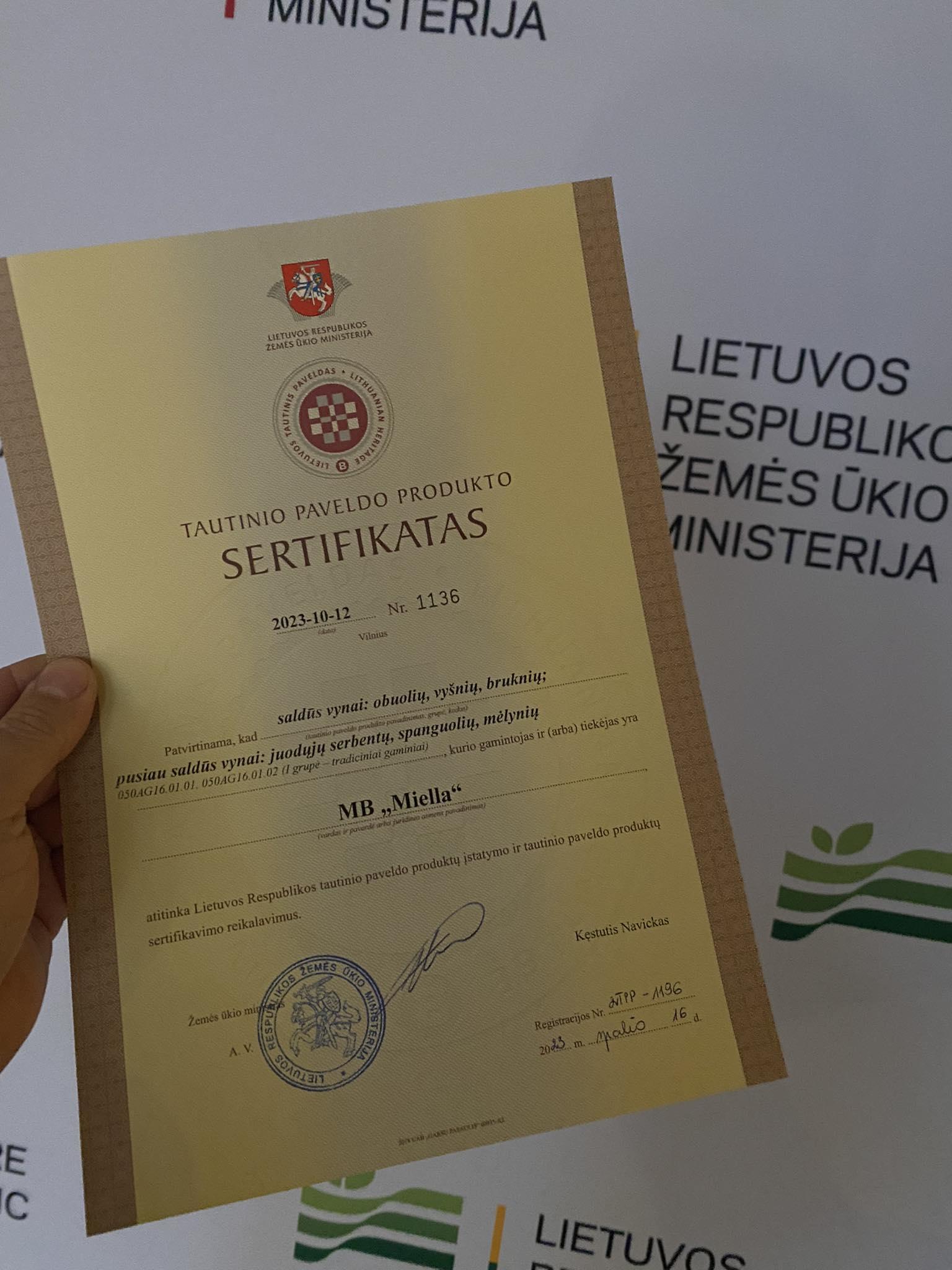 „Mes pirmieji Lietuvoje sertifikavome savo vynuogyną, esame pirmieji sertifikuoti vyno gamintojai Lietuvoje, o savo vynuogynui parengėme dokumentus gauti saugomos geografinės kilmės nuorodą. Tai reiškia, kad Baltijos šalyse ir Lenkijoje nėra tokio dalyko. Jei viskas pavyks, būsime pirmieji, gavę tokią nuorodą, bet tam reiks ir Briuselio palaiminimo. Jei tai pavyks, tai būsime pirmieji, įrašę Alytaus rajoną į vynuogių pasaulio žemėlapį, tada su vynuogių vynu keliausime į pasaulio vyno rinką“, – optimistiškai pokalbį užbaigė Marijus.