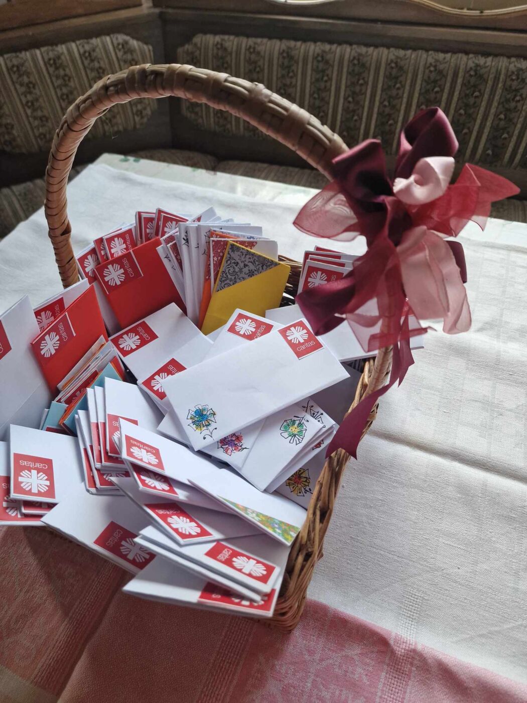 Veisiejų Šv. Jurgio parapijos „Carito“ vadovė Ona Rėkuvienė su savanorėmis darbavosi iš širdies: pačios savo rankomis lankstė vokelius, ant voko piešė gėlytes, kitos kažką gražaus užklijavo, o kad laiškai atrodytų kuo tikriau, pašto ženklo vietoje užklijavo ženklą su „Carito“ logotipu. Voko viduje: sveikinimas – tėčiui. Veisiejų Šv. Jurgio parapijos „Carito“ vadovė Ona Rėkuvienė nuoširdžiai dėkoja visoms savanorėms, prisidėjusioms prie tokio įdomaus, daug laiko reikalaujančio, bet kartu daug gerų emocijų teikiančio darbo. „Irutei, dviem Marytėms, Danguolei, dviem Danutėms, Gemai, dviem Birutėms“, – vardija savo darbščiąsias savanores Onutė. Pastebi, kad savanorės visad prisideda prie svarbių darbų: ar tai Kalėdos, ar Motinos diena, ar Tėvo diena. „Motinos dienai irgi buvome paruošę staigmeną – šventinį koncertą. Veisiejų trečiojo amžiaus universiteto ansambliukas dainavo mamoms“, – prisimena. Vis nepailsta ir vis kažkuo nustebina Veisiejų Šv. Jurgio parapijos „Carito“ savanorės. „Vis kyla naujų idėjų, tad ir darome“, – patikina Ona.