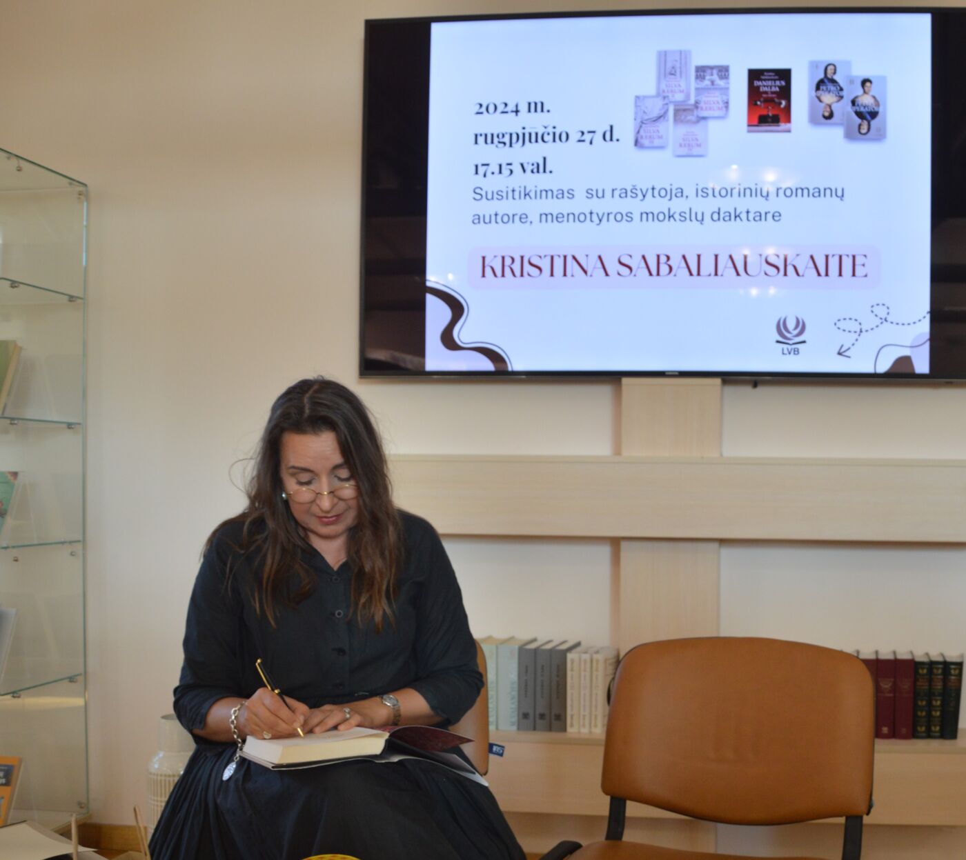 Kristinos Sabaliauskaitės knygas – „Silva Rerum“, „Petro imperatorė“, „Danielius Dalba ir kitos istorijos“ – buvo galima įsigyti, rašytoja mielai atidavė duoklę savo skaitytojams: be autografų neišėjo nė vienas nusipirkęs ar atsinešęs jos knygą. Tačiau skaitytojai laukia jos naujų knygų. Netikėtai, kaip pati prisipažino, prasitarė: „Šiandien leidyklai atidaviau rankraštį, kokio nieks nesitiki“. Ar tai poezija? „Tam tikra prasme – taip“, – patikino ji.
