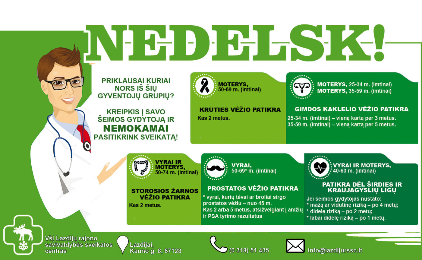 Dėl ligonių kasų kompensuojamų skiepų pacientai turi kreiptis į savo šeimos gydytoją toje gydymo įstaigoje, kurioje yra prisirašę.