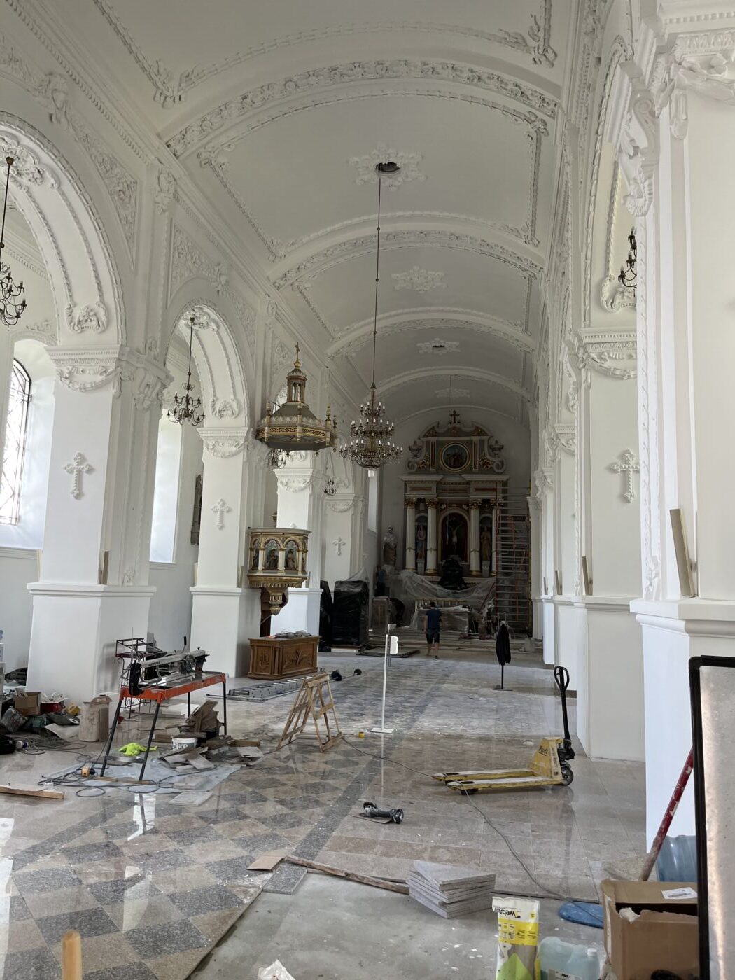 Jis kalbėjo, jog grindų klojimas pagrindinėse bažnyčios patalpose turėtų būti užbaigtas per dvi savaites. Lieka prieangiai, kurie, anot klebono, bus užbaigti per mėnesį.