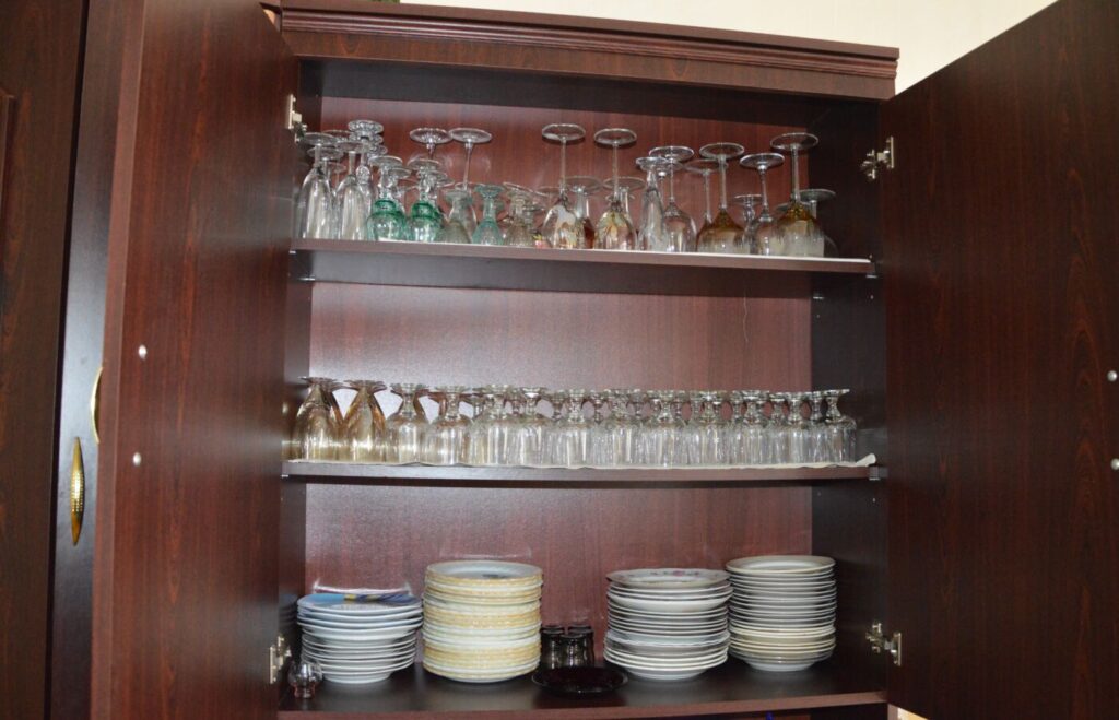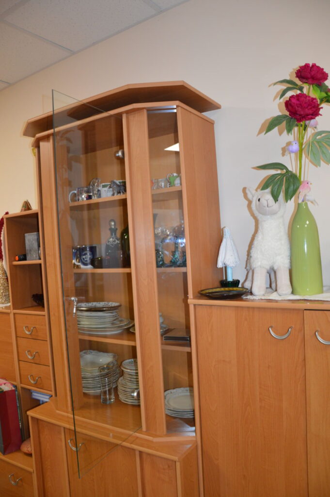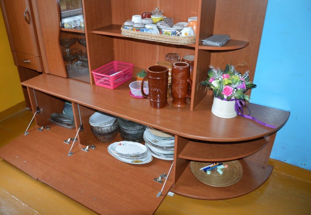 Stebulių ateities bendruomenės namuose aibė spintelių, spintų, sekcijų. Jos čia neatsitiktinai pastatytos, o ieškotos, surastos, nupirktos ir jau kartą turėję savo šeimininkus, dabar „gyvena“ antrą gyvenimą bendruomenės namuose. Jose sudėti indai, stiklinės, taurės, puodeliai, šaukštai, šaukšteliai. Gal kam vienkartiniai indai ir yra patogu, ir dažnai naudojami mūsų gyvenime, bet tik ne Stebulių ateities bendruomenės nariams. „Aš vienkartinių indų niekada nenaudojau, nenaudoju ir dabar“, – lyg kirviu nukerta aktyvi Stebulių ateities bendruomenės narė Rita Sabestinienė.