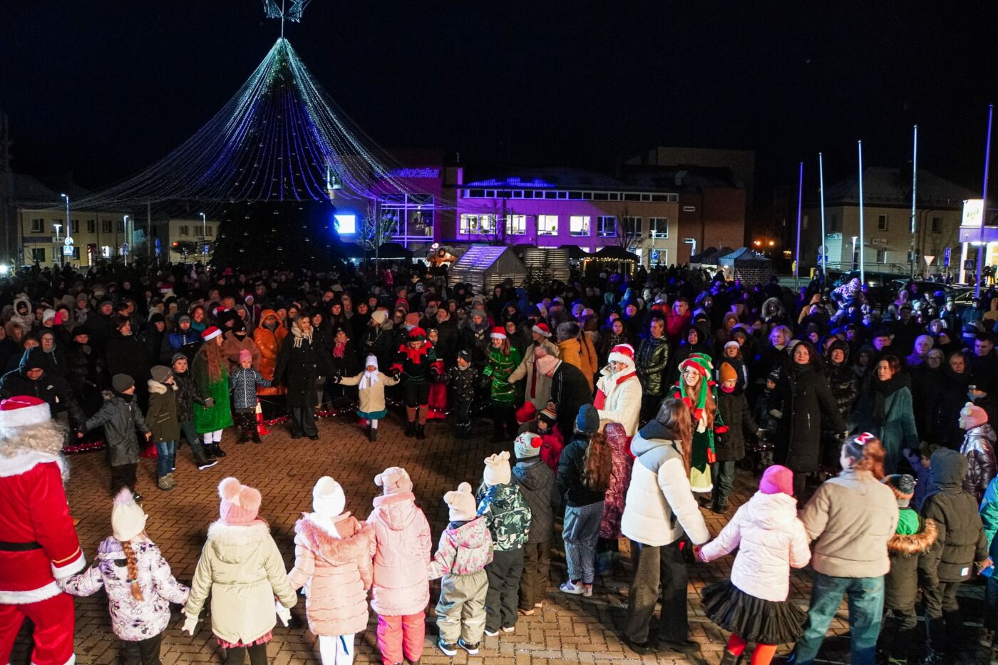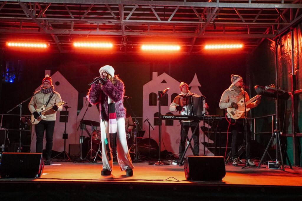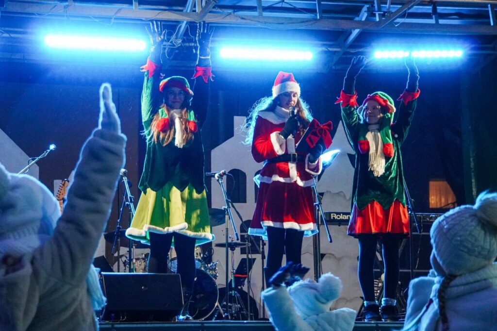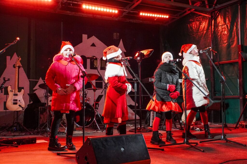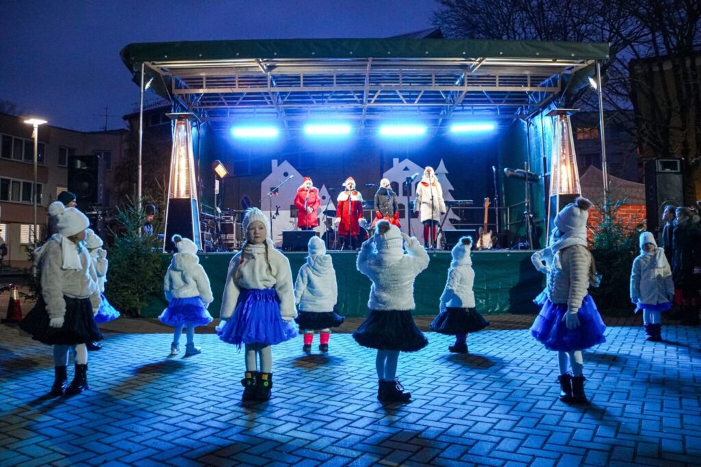 Renginyje „Dangiškai kalėdinė miesto pasaka“ dalyvavusius pasirodymais džiugino Lazdijų kultūros centro dainavimo studijos mokiniai, mažylių šokių studija, kolektyvo „Puerto“ jaunučių ir jaunių šokių grupės, o šventę vainikavo – grupės „Kitava“ koncertas.