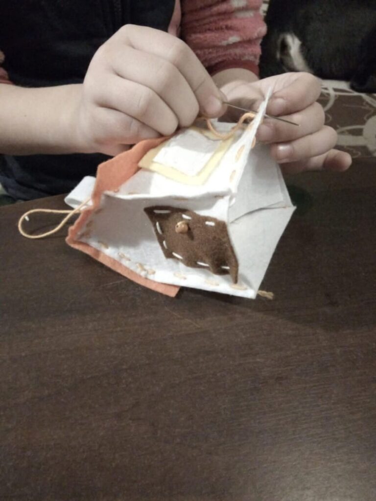 Pakalbinta Asta Dimšienė sako, jog tokia graži iniciatyva vyksta ketvirtus metus, o jų šeima žaisliukus Prezidentūros eglei kūrė trečią kartą. 2022 metais siuvo namelius, 2023 metais – angelo sparnus, o šiemet išsiuntė du meškučius – akcijos dalyvių buvo prašoma prisiminti asmenines brangiausias šventines akimirkas ir mylimiausius vaikystės žaislus sugrąžinti veltų kalėdinių žaisliukų pavidalu. Žaisliukus šiųmetei eglei vėlė tik dukra Austėja, nes mažajai mama dar adatos neduoda į rankas. „Pamačiusios internete, jog šiemet vėl kviečiama prisidėti prie pirmosios ponios Dianos Nausėdienės inicijuotos akcijos „Mylimiausias vaikystės žaislas“ ir papuošti Prezidentūros eglę savo rankomis sukurtu žaislu, nutarėme dalyvauti. Šioje akcijoje gali dalyvauti ir šeimos. Kadangi šiemet eglę sumanyta puošti veltinukais, ieškojau vėlimui skirtos vilnos. Deja, namuose suradau vienos vienintelės spalvos – rudos“, – prisipažįsta Asta. Vyresnėlė Austėja Dimšaitė velti buvo išmokusi mokykloje, tad ėmėsi šio darbo. Tuo tarpu mamai vėlimas buvo nauja, dar nebandyta patirtis. Teko mokytis ir klausyti Austėjos pamokymų. „Aš knygą apie vilnos vėlimą turiu, tad tik knygoje ir buvau skaičiusi, kaip tai daroma, bet pačiai velti nebuvo tekę“, – sako Asta, prisipažindama, jog net padėti vyresnėlei nelabai galėjo. Mergaitė padarė pagrindą – nuvėlė ir meškiukų galvytes maždaug delno dydžio, ir ausytes. „Nosis nėrėme vąšeliu, akytes pasiuvinėjome truputį“, – paaiškina. Kai viskas buvo baigta, išsiuntė į Prezidentūrą. Asta sako, kad ji su savo dukromis daro tai, kas joms patinka, džiaugiasi galėdamos pradžiuginti savo darbeliais ir kitus. Pirmoji šalies ponia D. Nausėdienė patikina, kad žaisliukų gaminimas – tai šeimyninio ryšio stiprinimas, apjungiantis visus, didelius ir mažus, žmones Lietuvoje ir už Lietuvos ribų.
